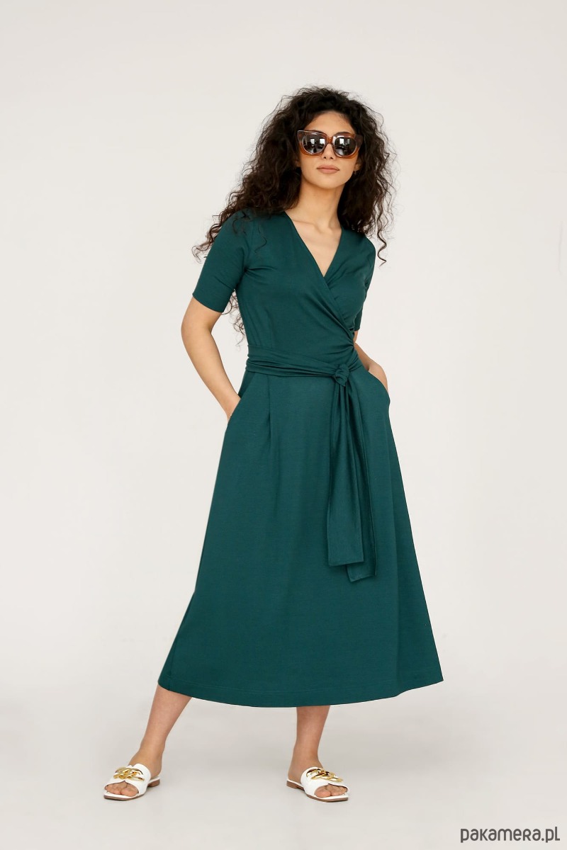 Amelia to sukienka z lekko dopasowaną, kopertową górą. Subtelnie podkreśla i modeluje biust niezależnie od jego rozmiaru.