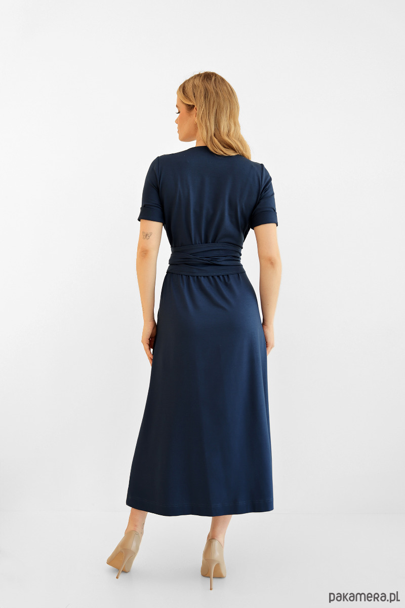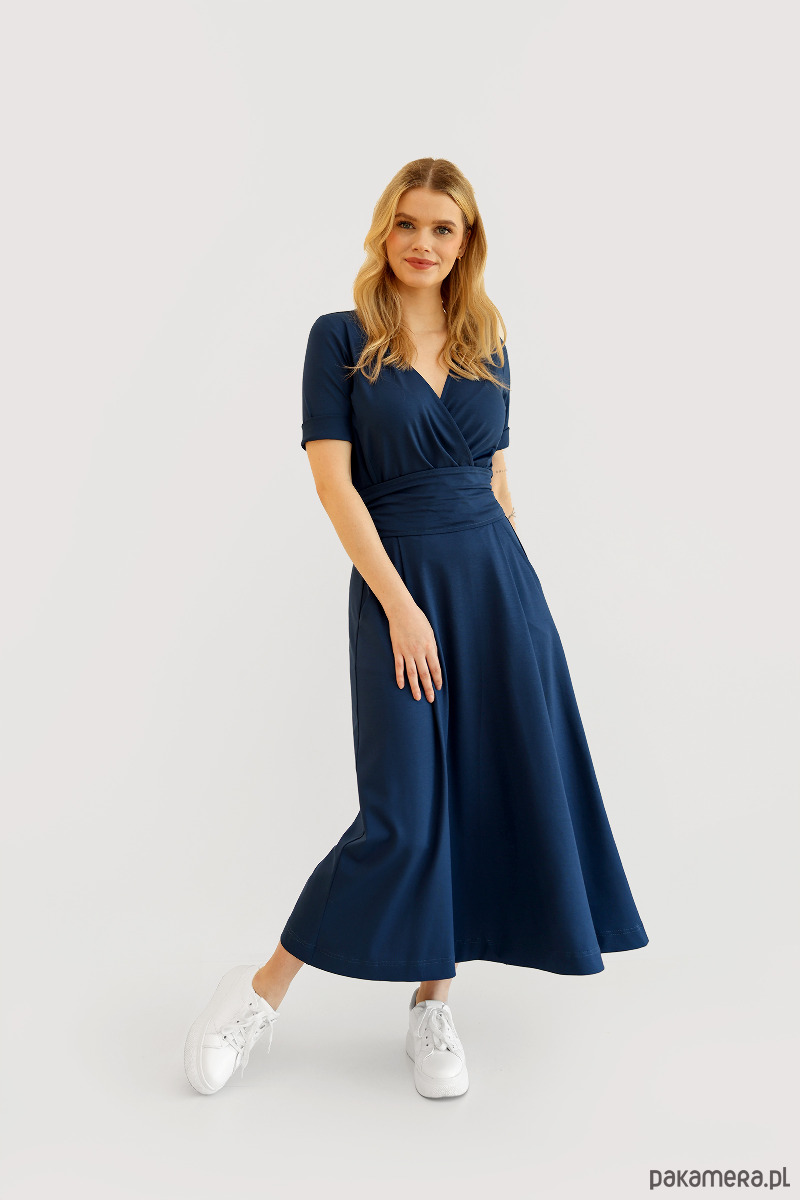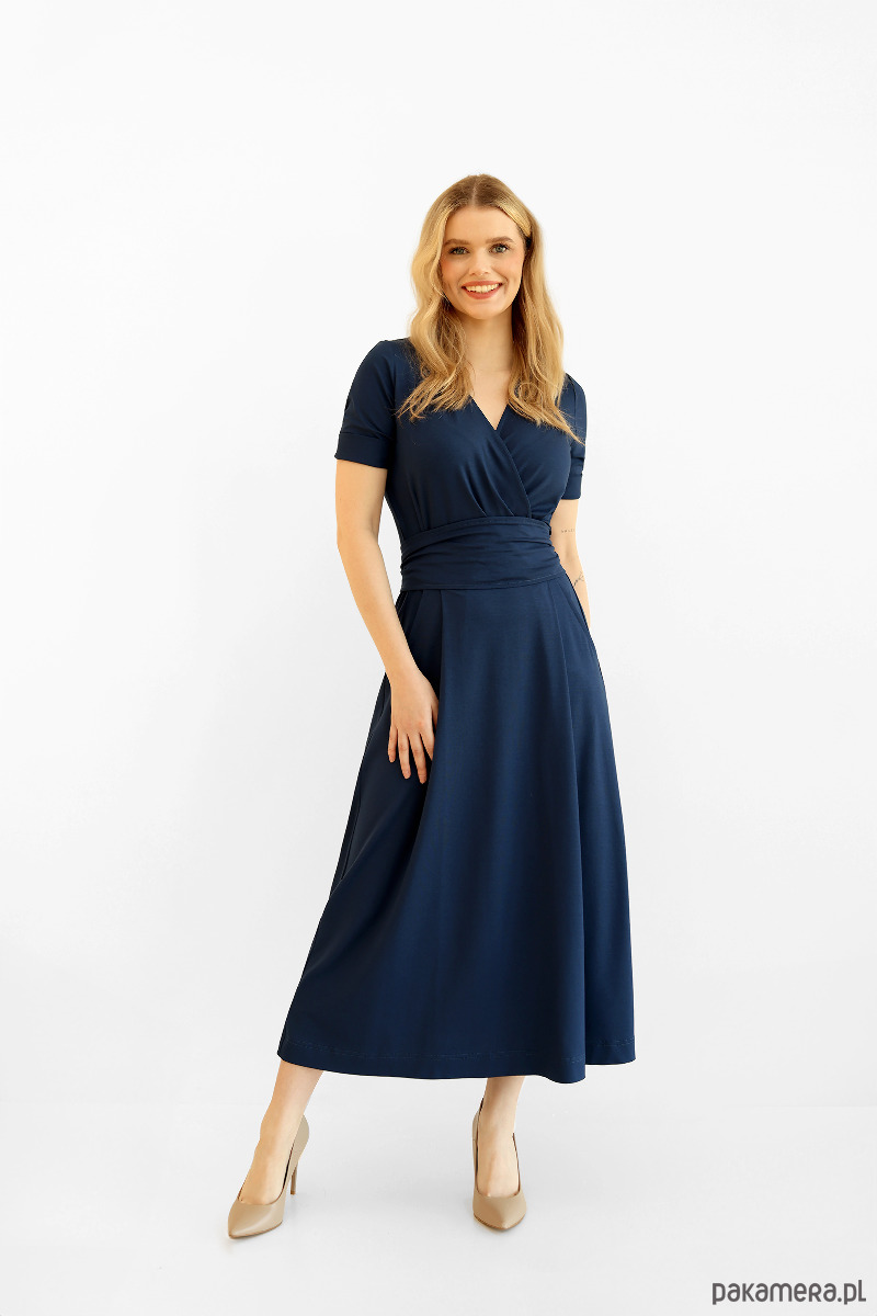 Amelia to sukienka z lekko dopasowaną, kopertową górą. Subtelnie podkreśla i modeluje biust niezależnie od jego rozmiaru.
