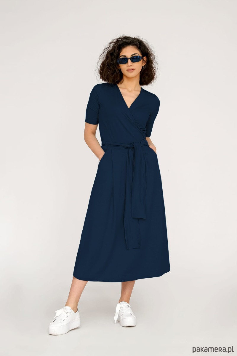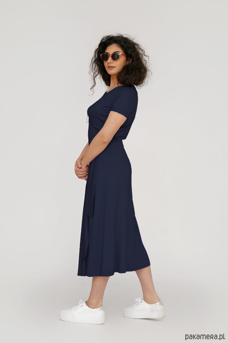Amelia to sukienka z lekko dopasowaną, kopertową górą. Subtelnie podkreśla i modeluje biust niezależnie od jego rozmiaru.