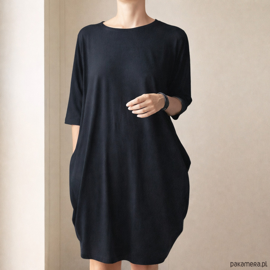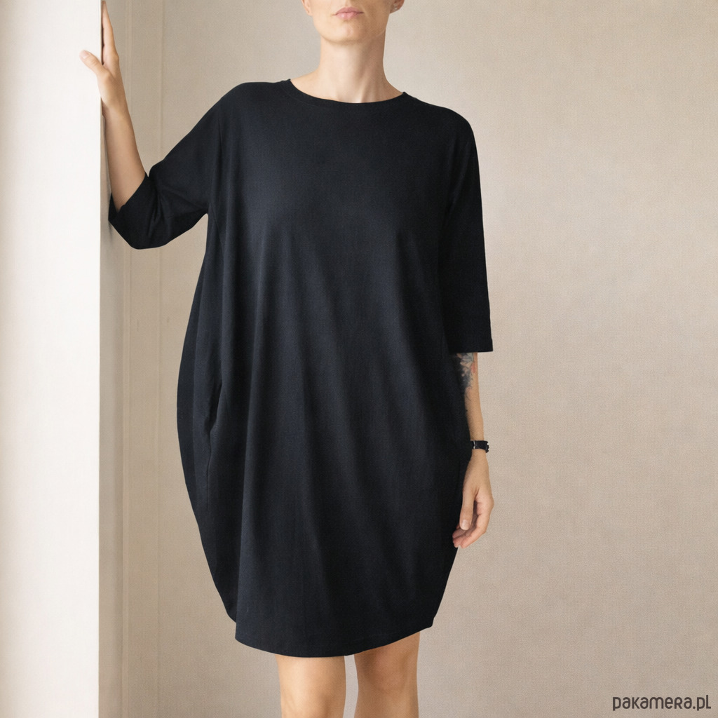 Sukienka z grubszej dzianiny koszulkowej. Luźna, ale kobieca, ciekawy krój, który chowa co ma chować i eksponuje, co ma być eksponowane ❤️