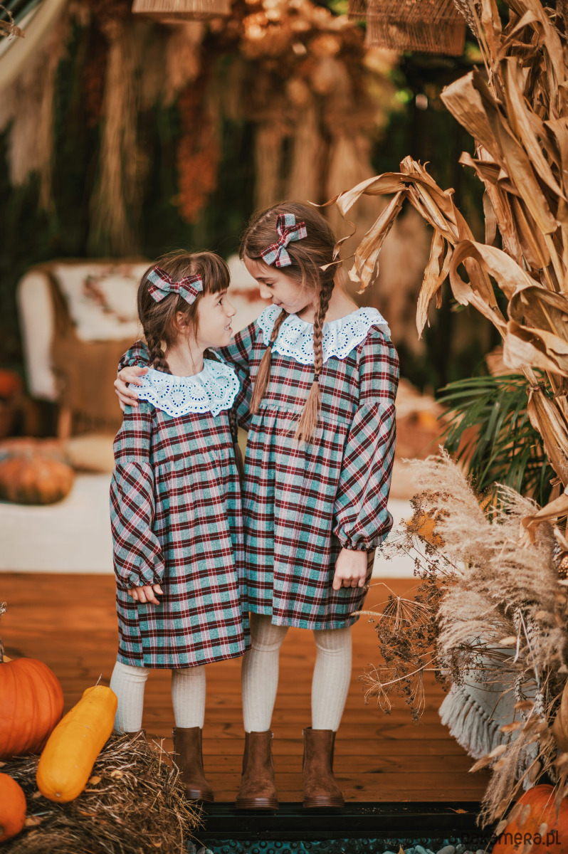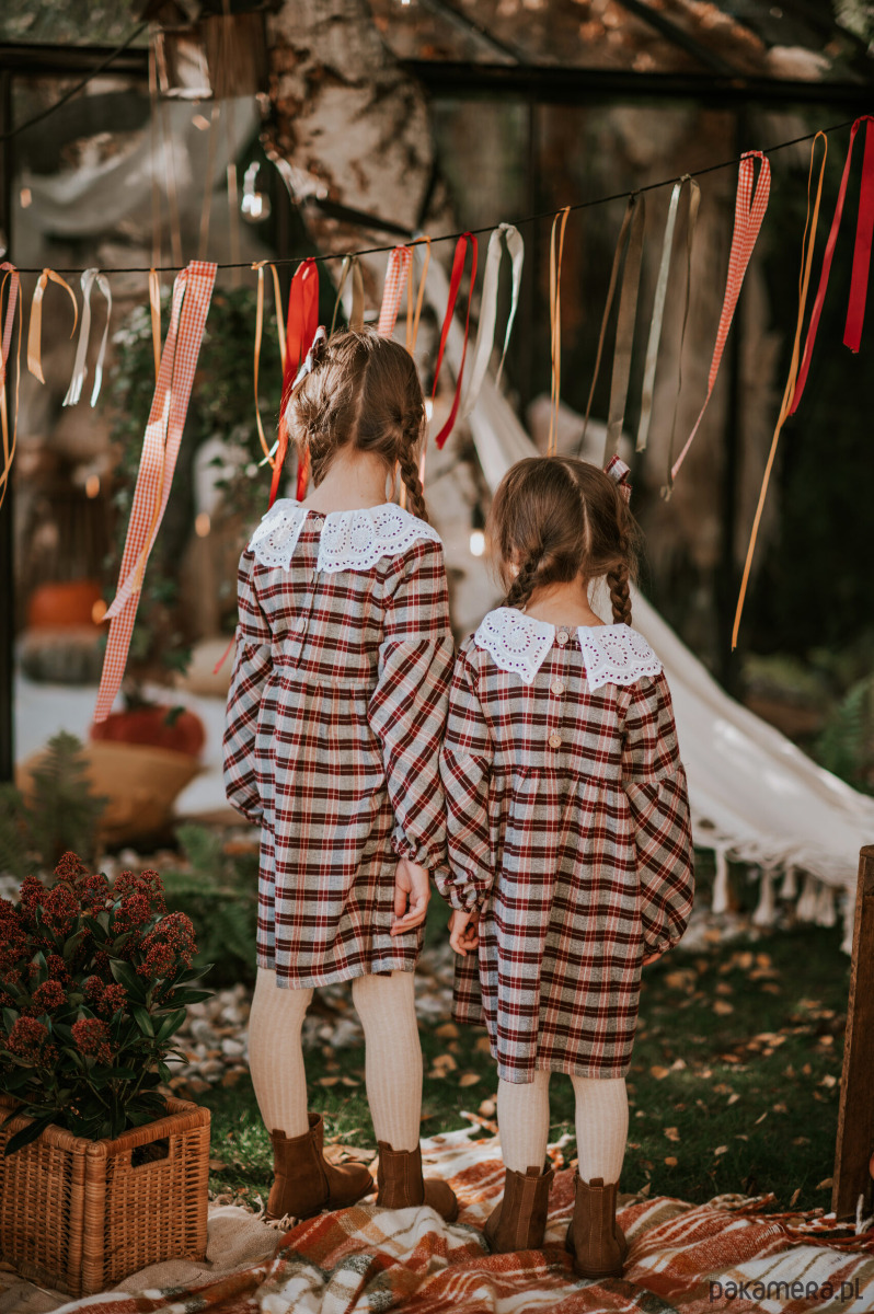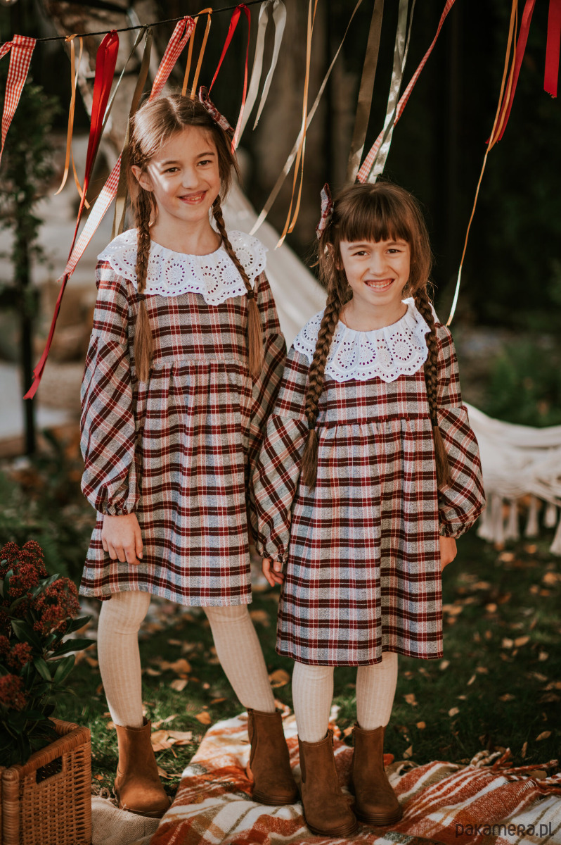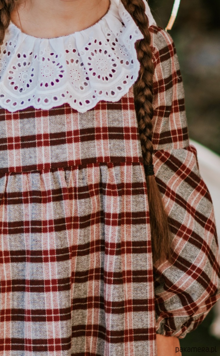 Bardzo romantyczna sukienka w kratę. Kołnierzyk wykonany z przepięknego haftu angielskiego. Rękawy z uroczymi bufkami. Elegancja, klasa i styl retro, który kochacie!