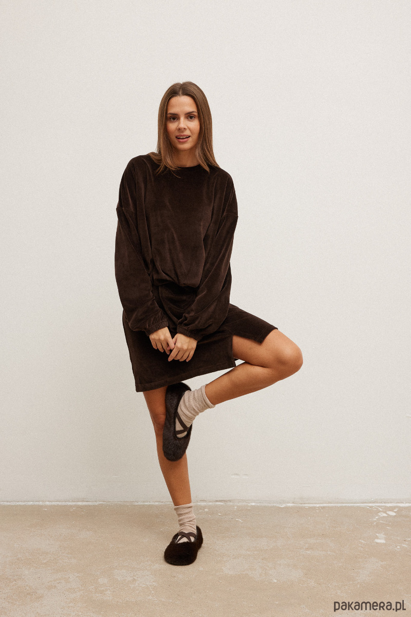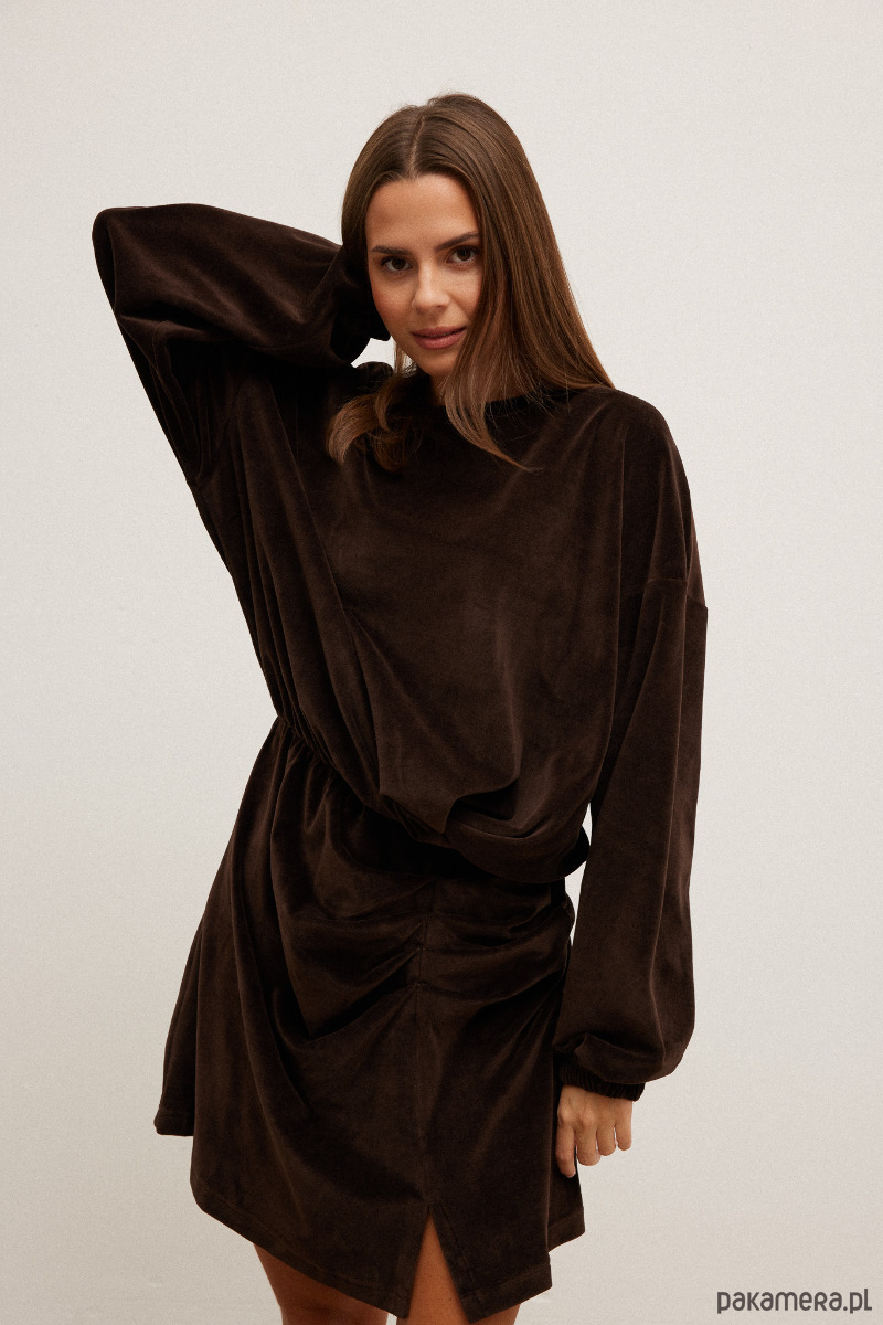 Sukienka CHLOE to zupełnie nowa ronkowa propozycja. Góra jak oversizowa bluza typu crewneck z wąskim dołem z marszczeniami i rozporkiem tym razem w wersji MINI. Sukienka, którą zestawisz ze szpilkami i sneakersami a będziesz czuła się w niej jak w najmilszych dresikach