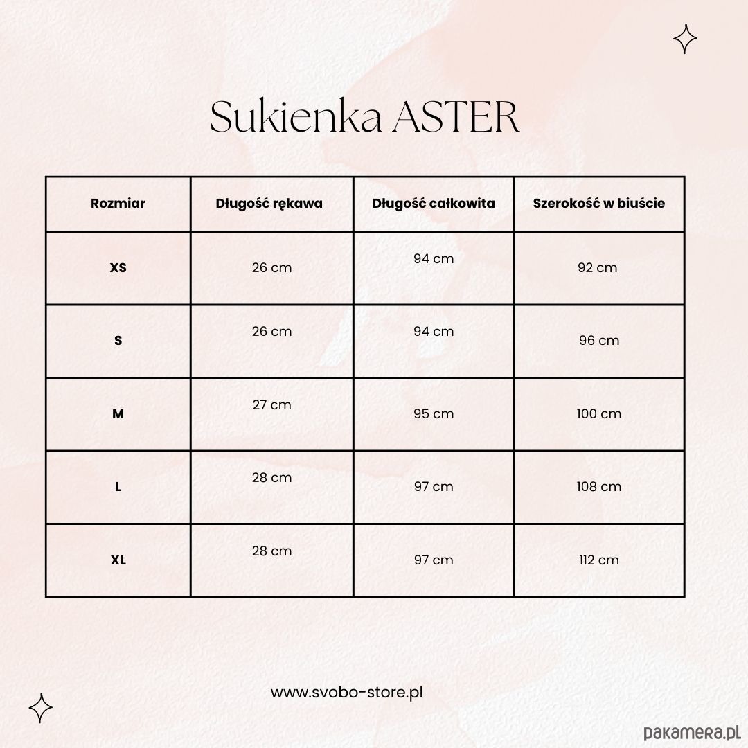 Aster to sukienka, która została uszyta z muślinu z bawełny organicznej, który posiada ceryfikat Global Organic Textil Standard (GOTS), co oznacza, że produkcja tej tkaniny odbywała się zgodnie z poszanowaniem dla środowiska naturalnego.