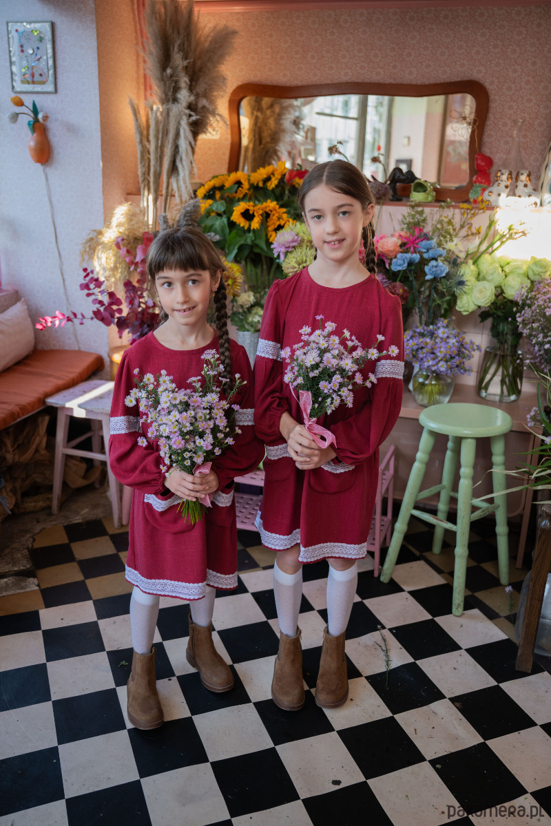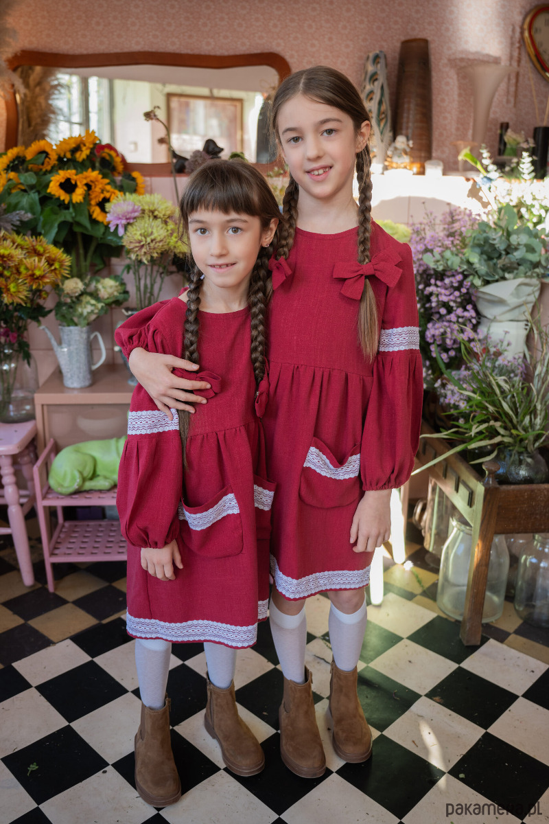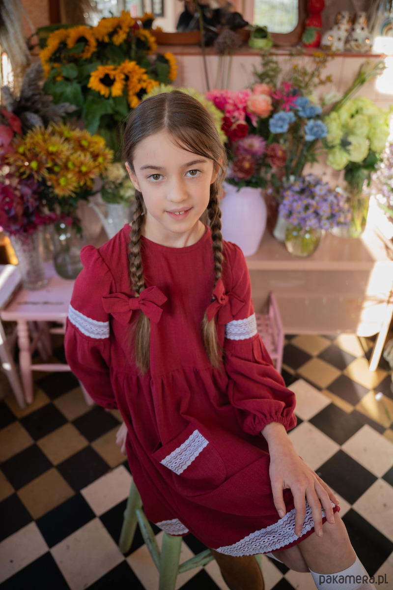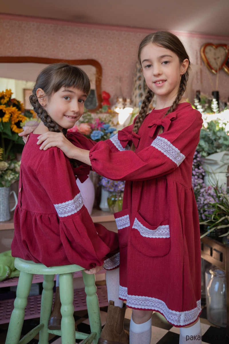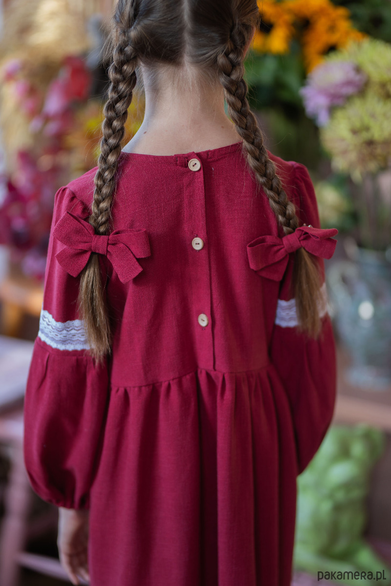 Materiał z którego uszyliśmy sukienkę: wysokiej jakości 100% len z wiskozą- starannie dobrany materiał, który jest delikatny i przyjemny dla skóry dziecka