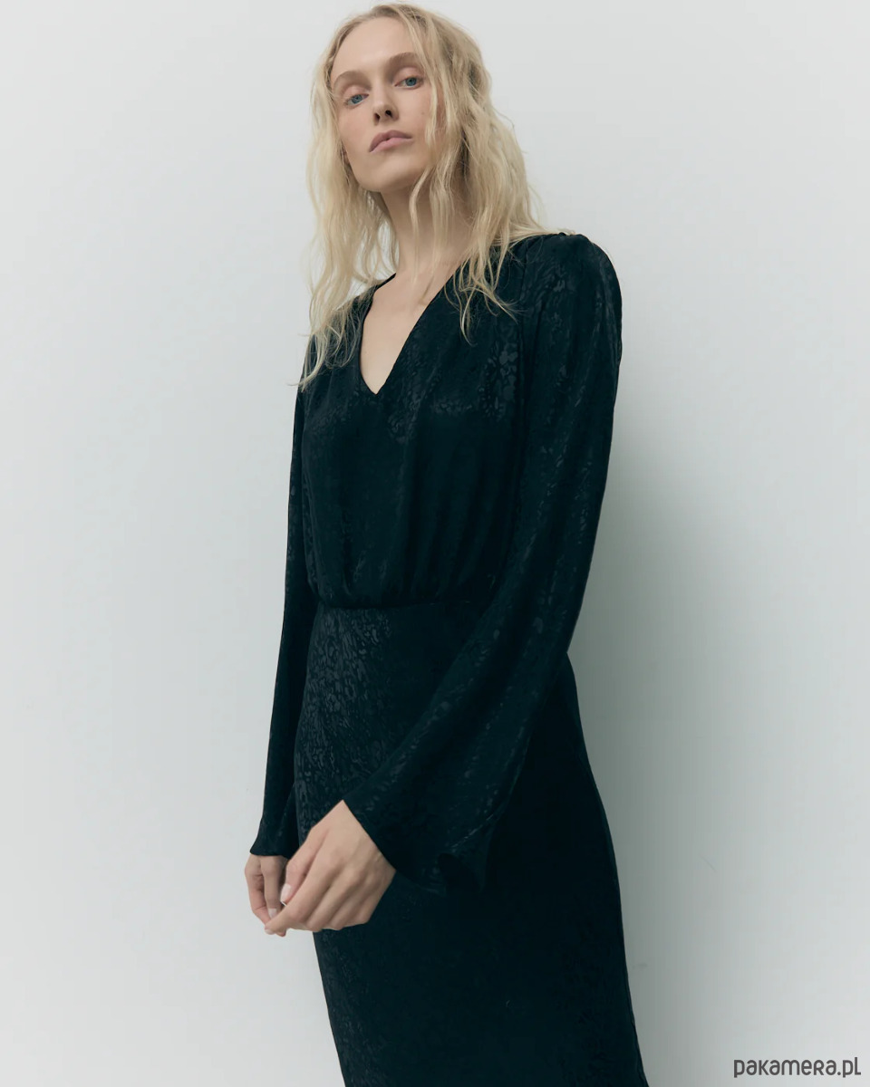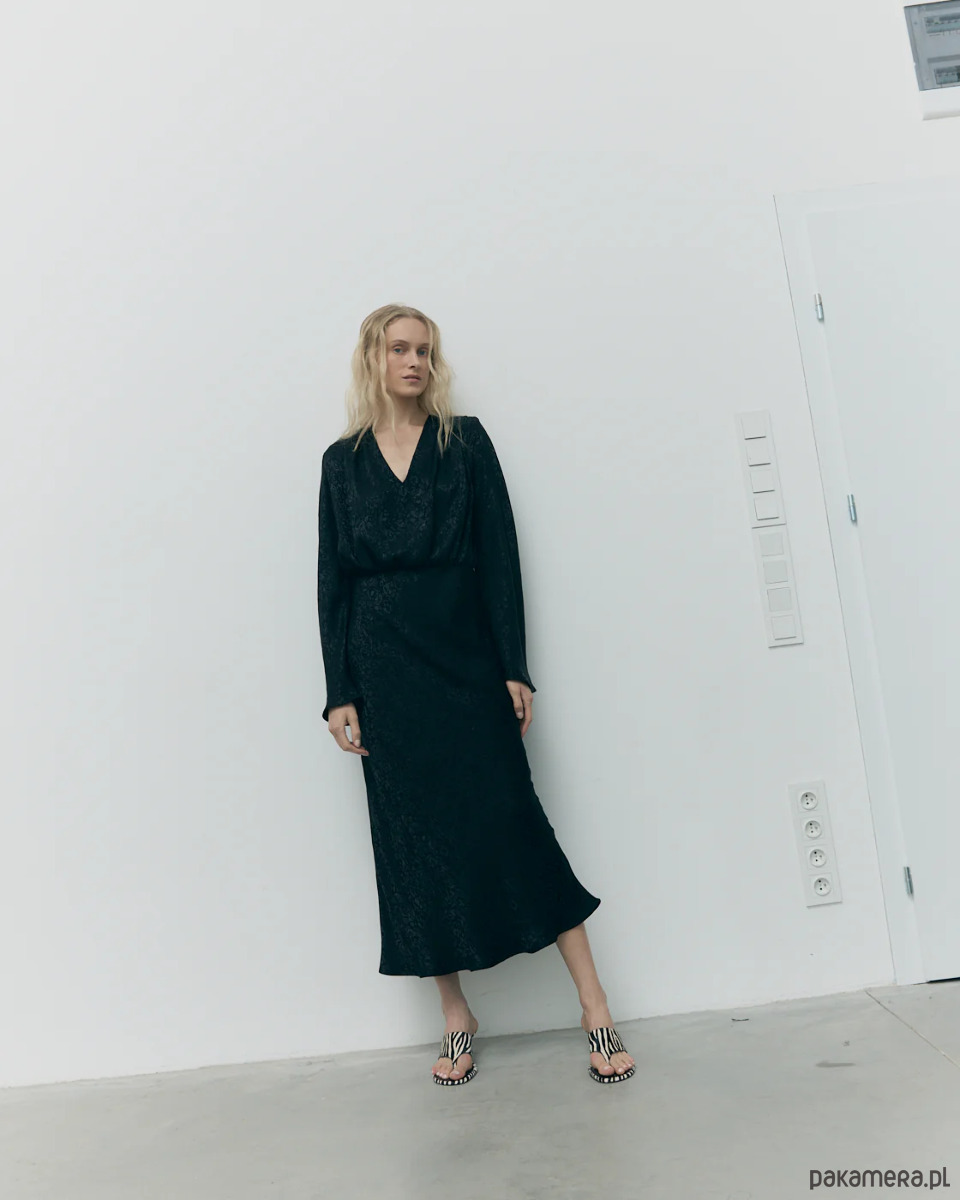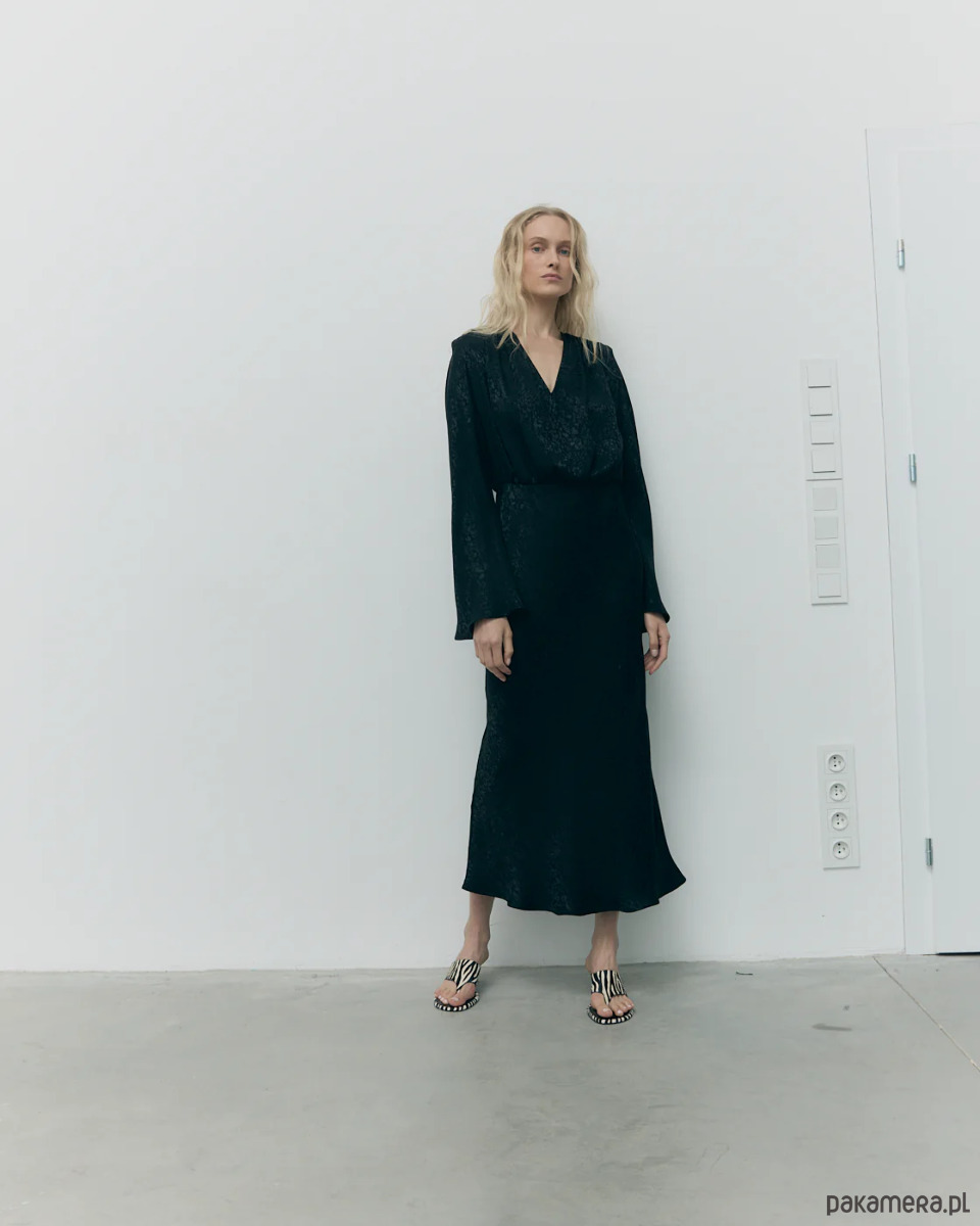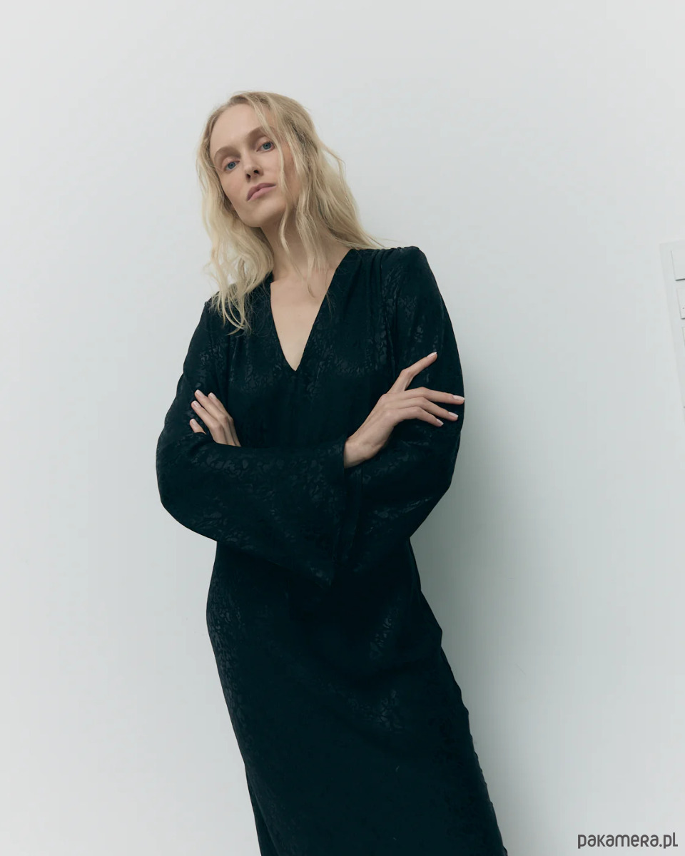 Sukienka Desire to kwintesencja elegancji i ponadczasowego stylu w nowoczesnym wydaniu. Wykonana z wyjątkowej tkaniny żakardowej, łączy w sobie subtelny połysk, piękną fakturę i komfort noszenia. To model, który wyróżnia się wyrafinowanymi detalami i architektoniczną formą – perfekcyjnie wpisuje się w ideę garderoby premium.