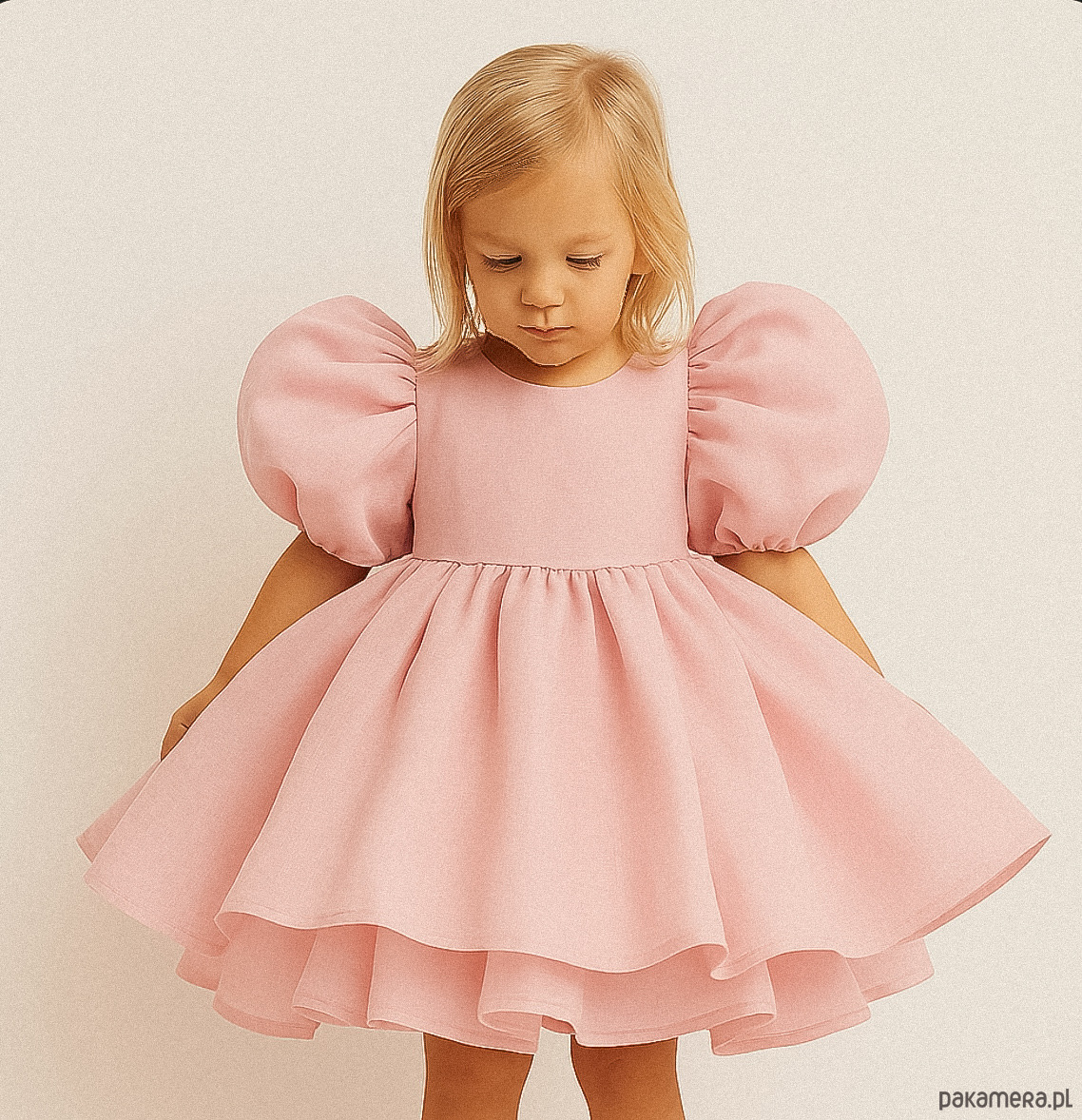 Sukienka tiulowa dla dziewczynki z bufiastymi rękawami