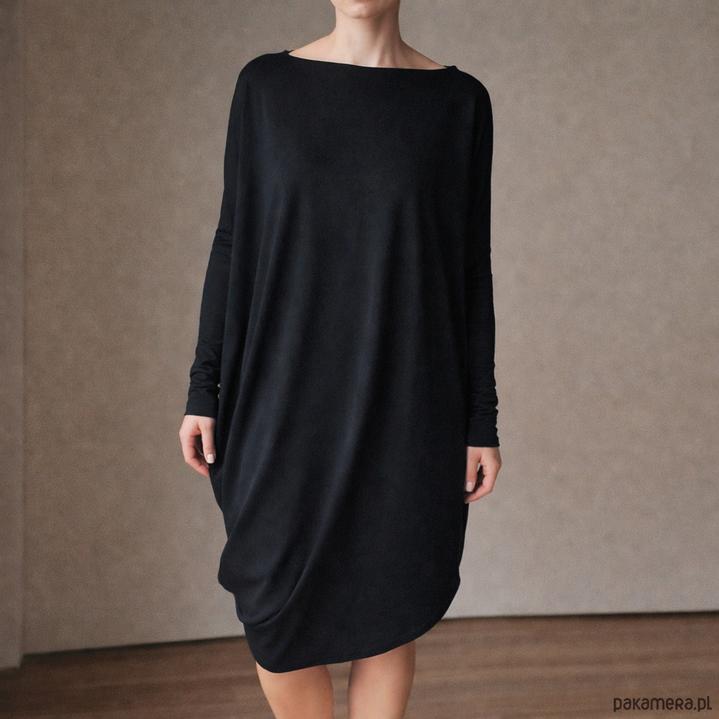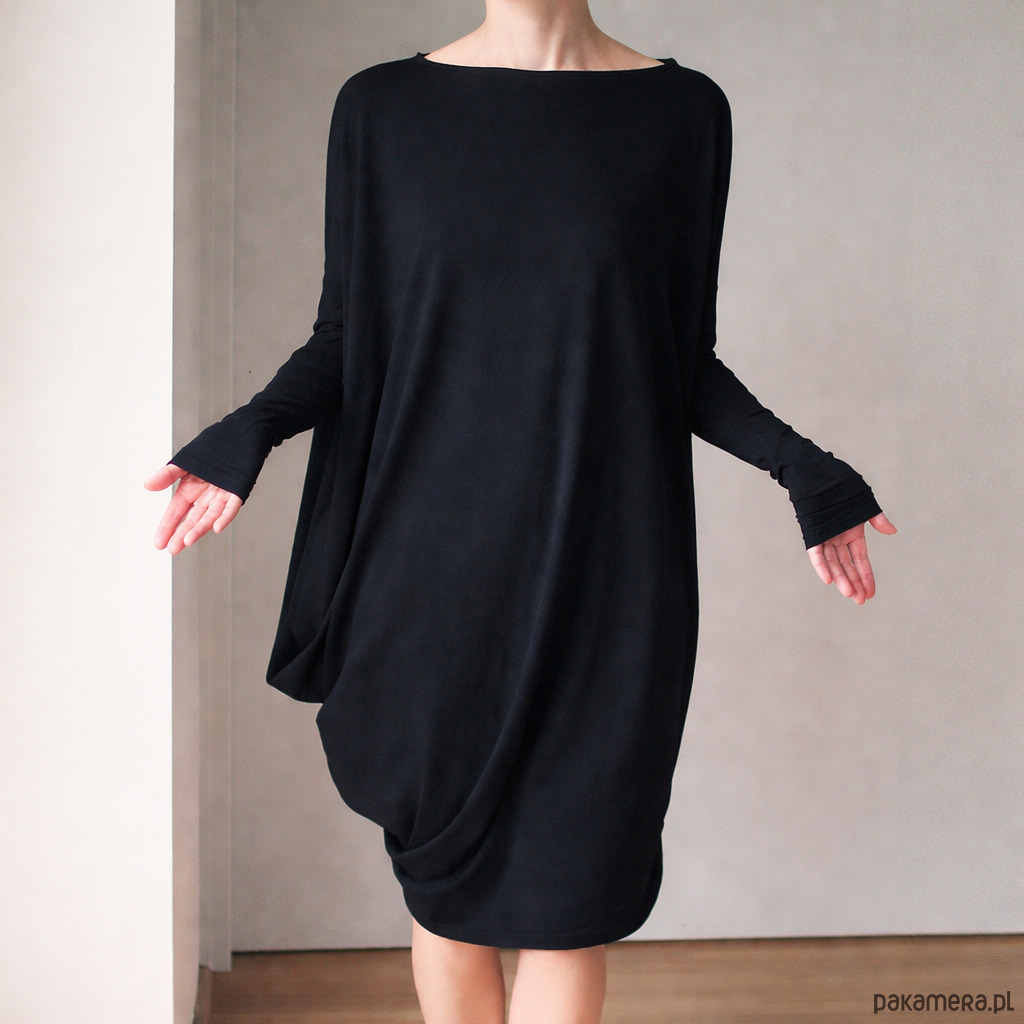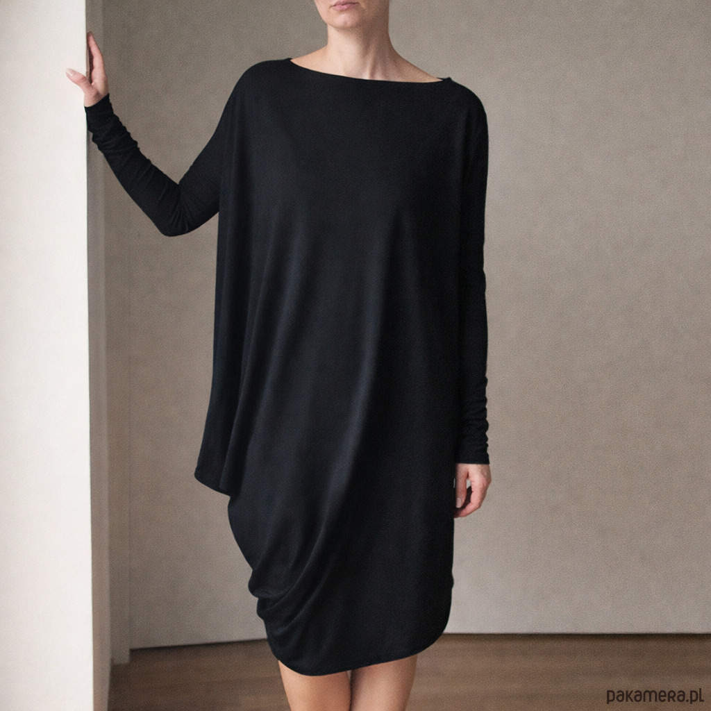Sukienka długi rękaw asymetria Czarna