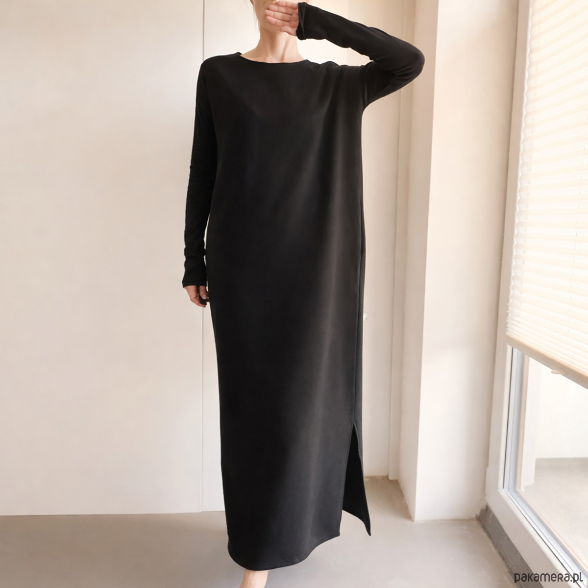 Sukienka długi rękaw Czarna z rozporkami