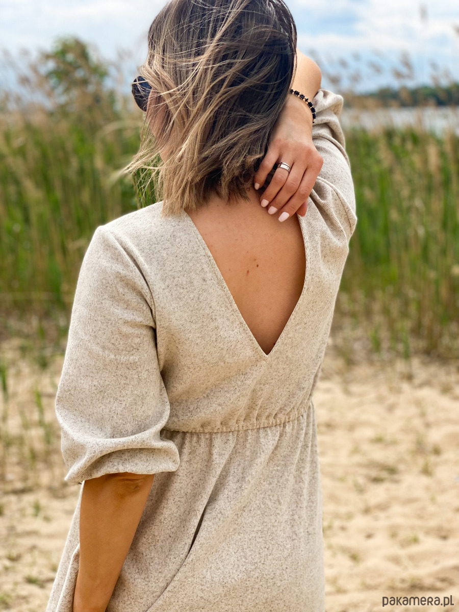 Sukienka ,,Dwustronna” została stworzona z myślą o tym, aby móc ją nosić w dwóch konfiguracjach. Dekolt z przodu jak i z tyłu 🙂