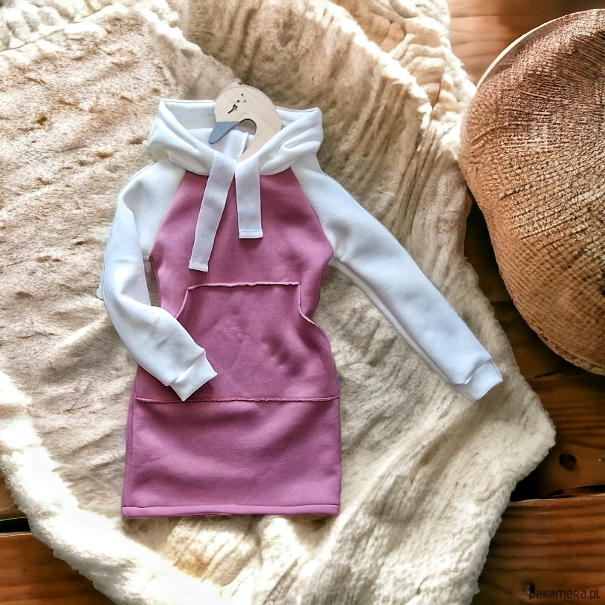 Wygodna sukienka uszyta z dzianiny dresowej pętelki Polskiej produkcji w kolorze ecru-wrzos