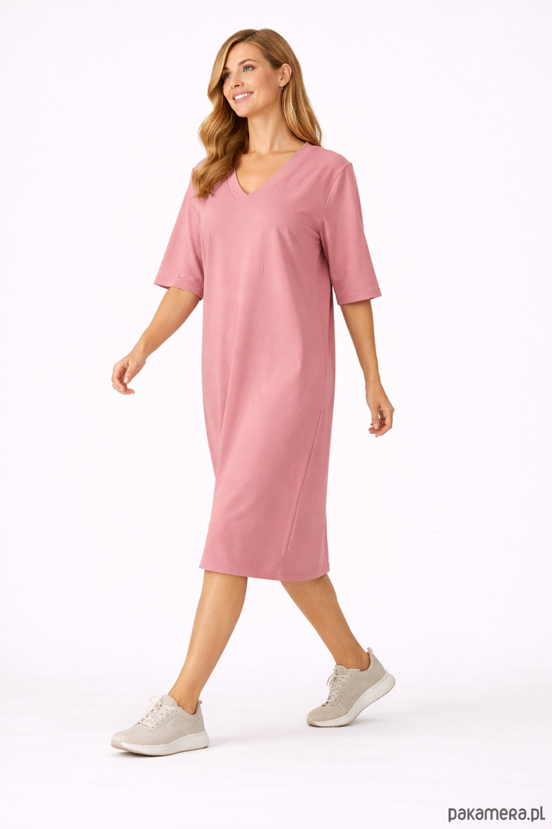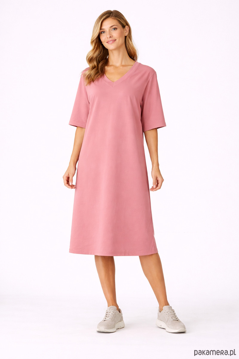 Sukienka oversize z dekoltem V – komfort i styl na co dzień
