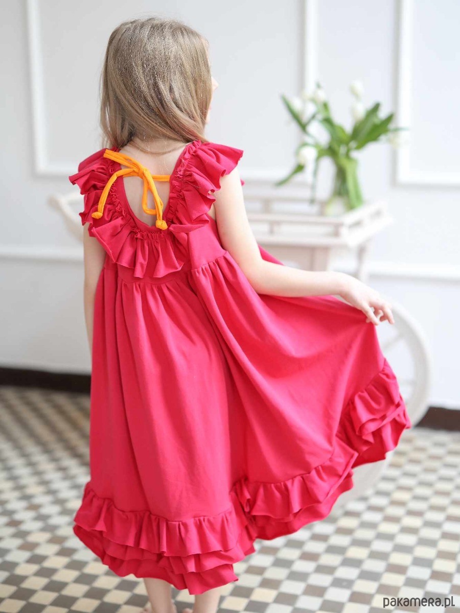 Sukienka uszyta z miękkiego i przewiewnego jerseju idealnie nadającego się na słoneczne dni.
