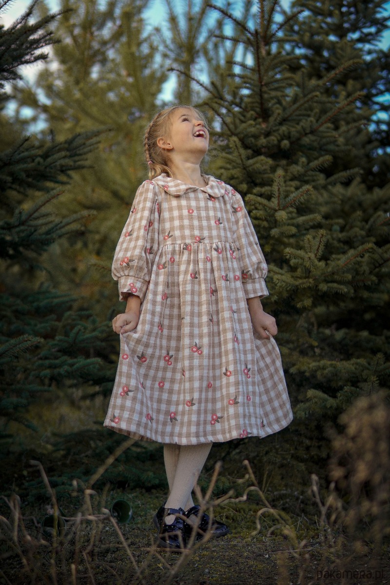Sukienka muśllinowa Florina ma w sobie wszystko, piękny kolor, haft, uroczy kołnierzyk.