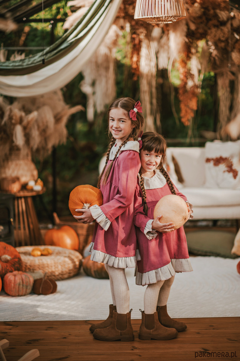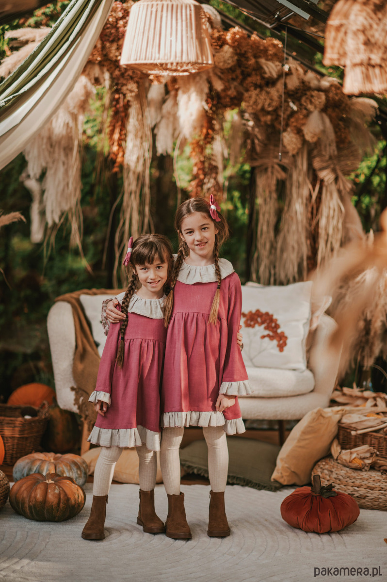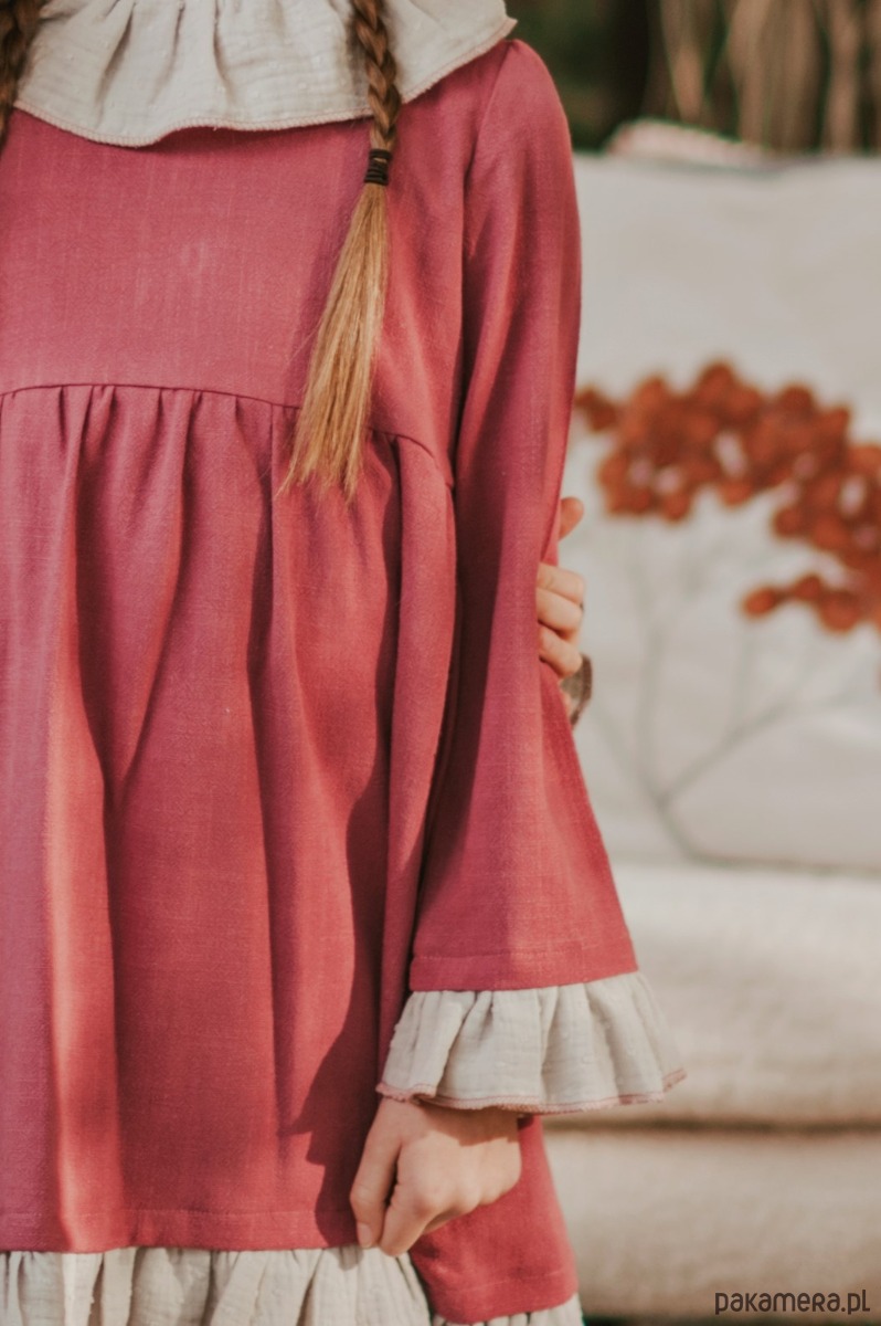 Materiał z którego uszyliśmy sukienkę: wysokiej jakości 100% len w wiskozą, starannie dobrany materiał, który jest delikatny i przyjemny dla skóry dziecka