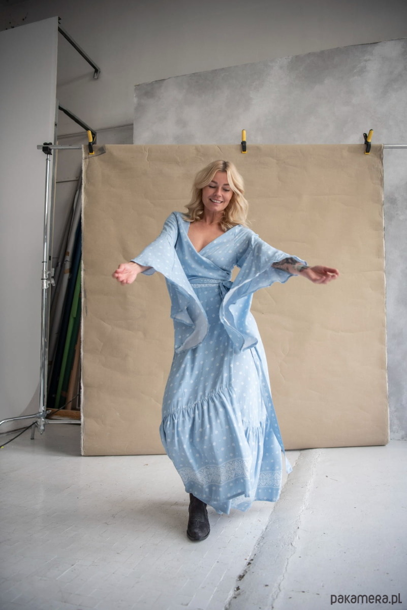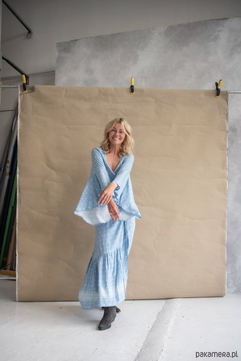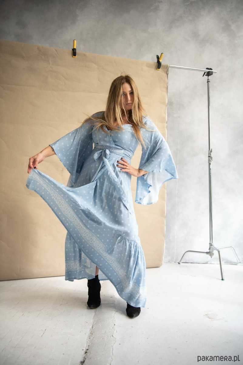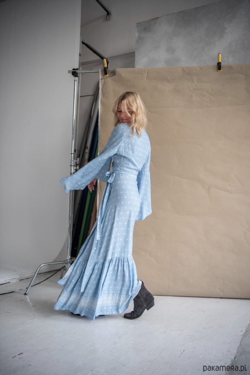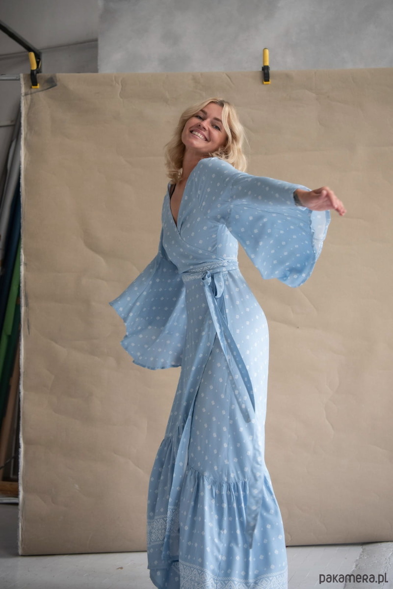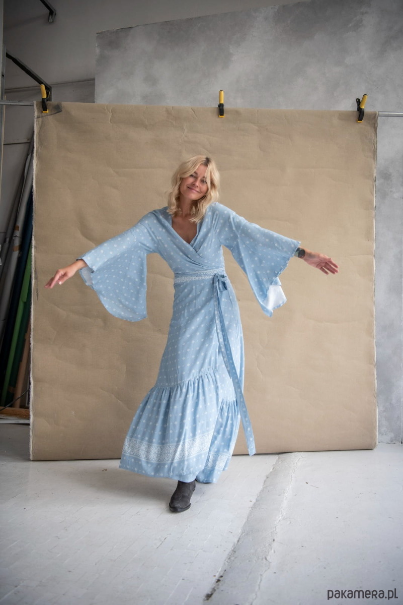 Sukienka z falbaną Sukienka, w której pięknie będą wyglądały i Pchełki, i Dziewczyny o pełniejszych kształtach. Jej obwód regulujemy sobie paskiem, czyli po prostu ściskamy się nim bardziej lub wiążemy go luźno. W ten sam sposób decydujemy, jak bardzo chcemy wyeksponować dekolt, który pomieści biust w każdym rozmiarze. Czyż to nie jest znakomite rozwiązanie? Sukienka ma szerokie, hippisowskie rękawy, jej dół wykończony jest falującą przy każdym ruchu falbaną. Jest wygodna, nie krępuje nóg, można w niej przetańczyć całą noc! Ale nie tylko, bo kto powiedział, że nadaje się tylko na wielkie okazje? Okazją, by założyć sukienkę, wyglądać kobieco i czuć wyjątkowo, jest przecież każdy nowy dzień!