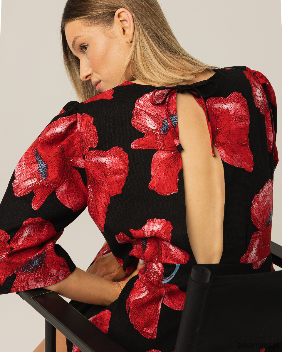 Model wyróżnia się głębokim, lecz smukłym wycięciem na plecach, które subtelnie podkreśla sylwetkę i dodaje całości nowoczesnej elegancji. To propozycja, która doskonale odnajdzie się w letniej garderobie — zarówno na co dzień, jak i na wyjątkowe okazje