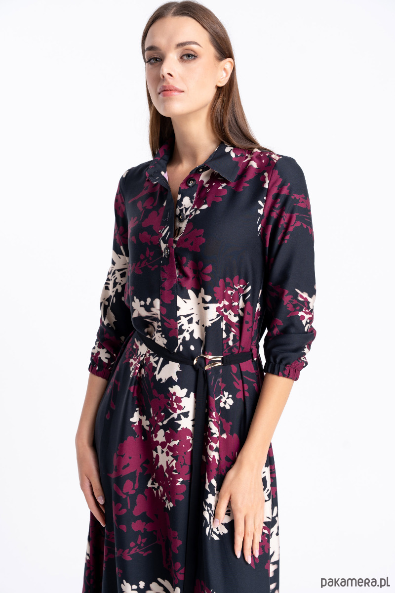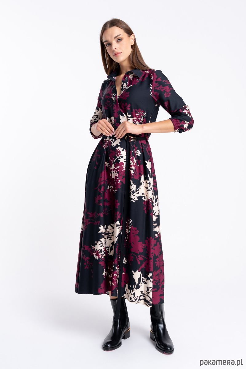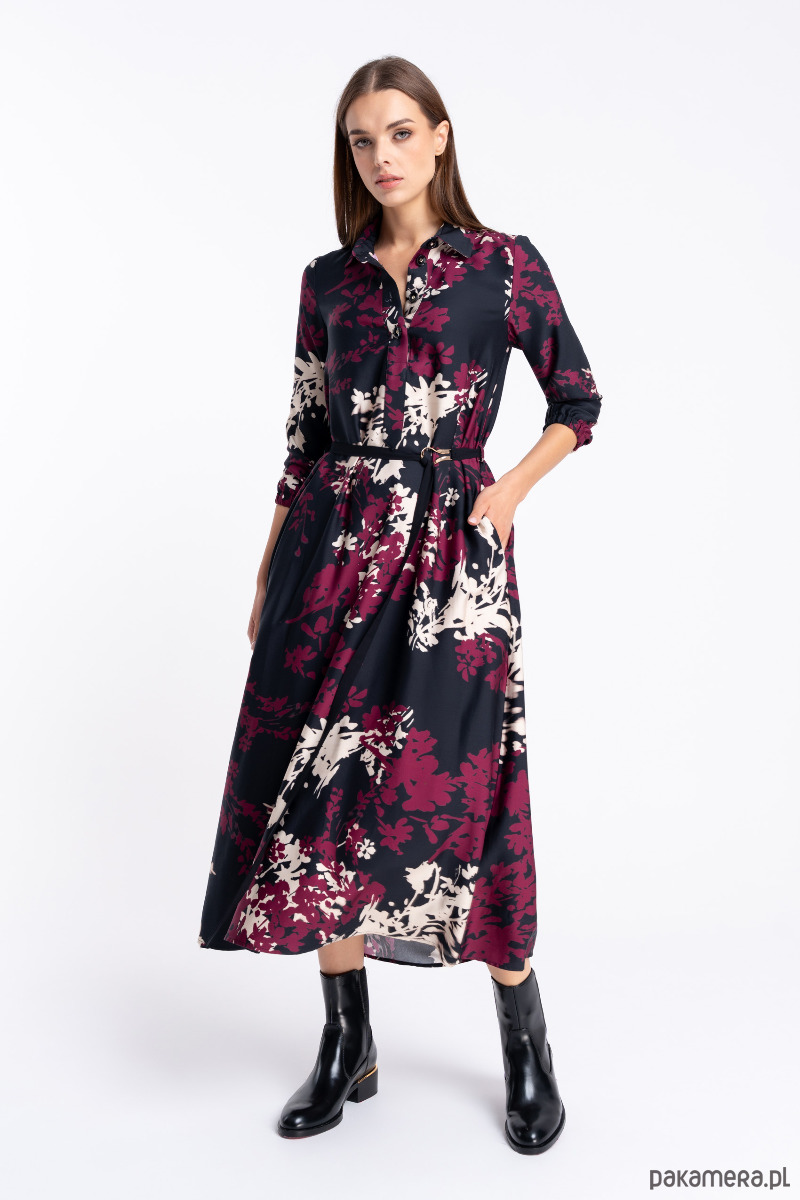 Wiskozowa sukienka maxi w kwiatowy wzór w kolorach czerni, bordo i ecru.