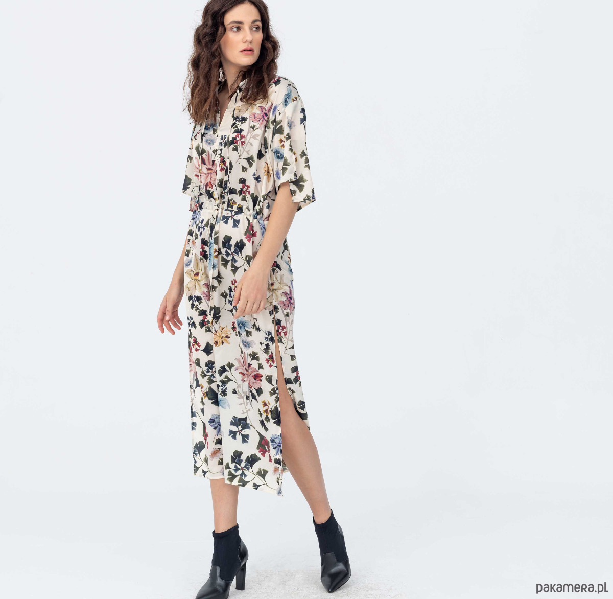 –Japońska, geometryczna forma w połączeniu z roślinnym deseniem tworzy elegancką i kobiecą całość