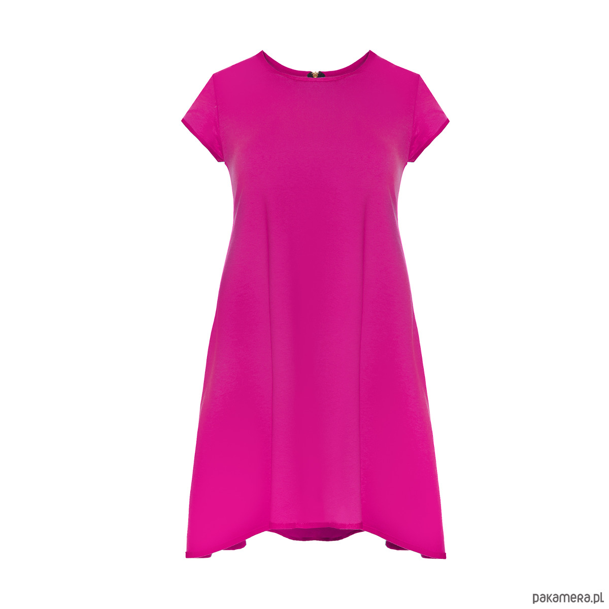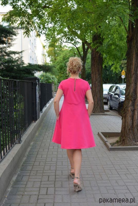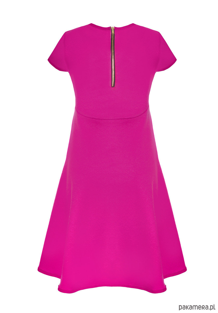 Sukienka klosz dłuższy tył fuksja