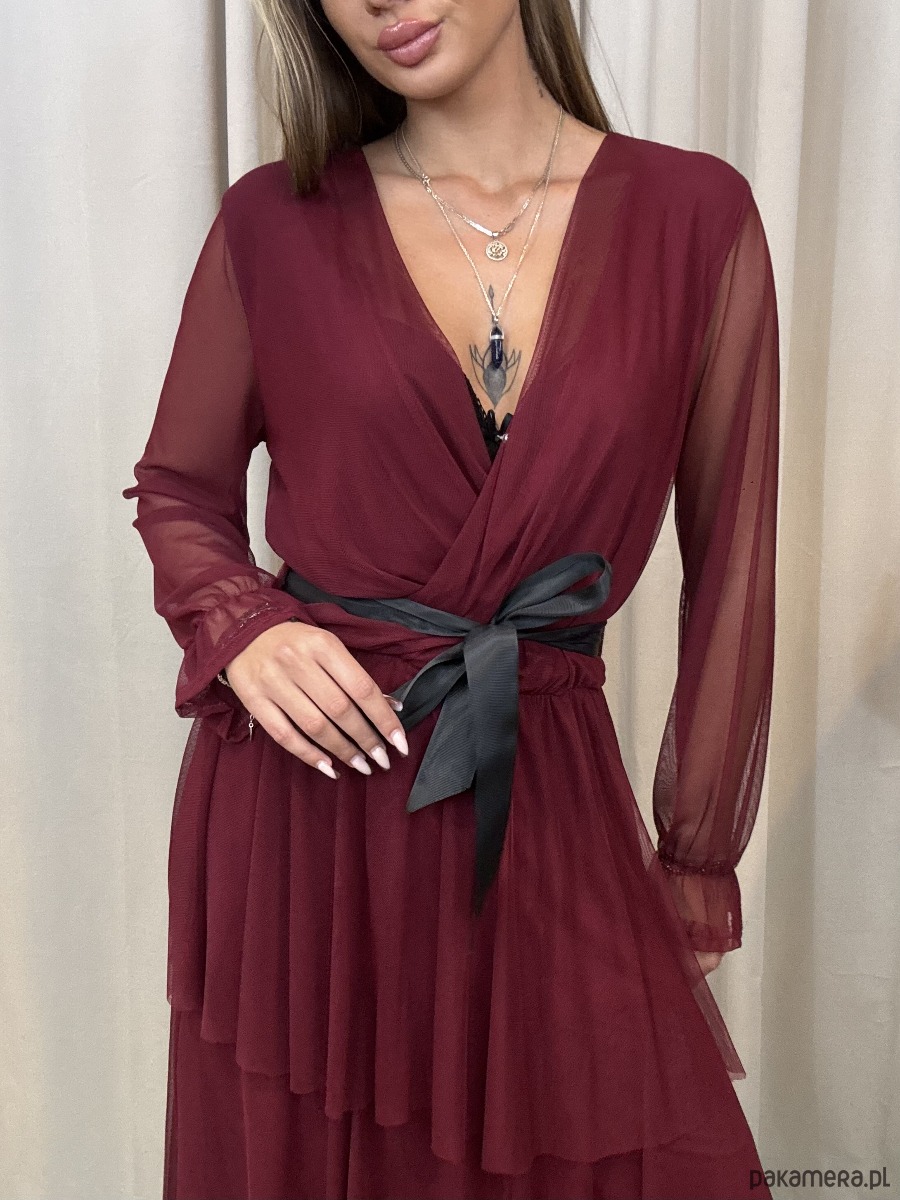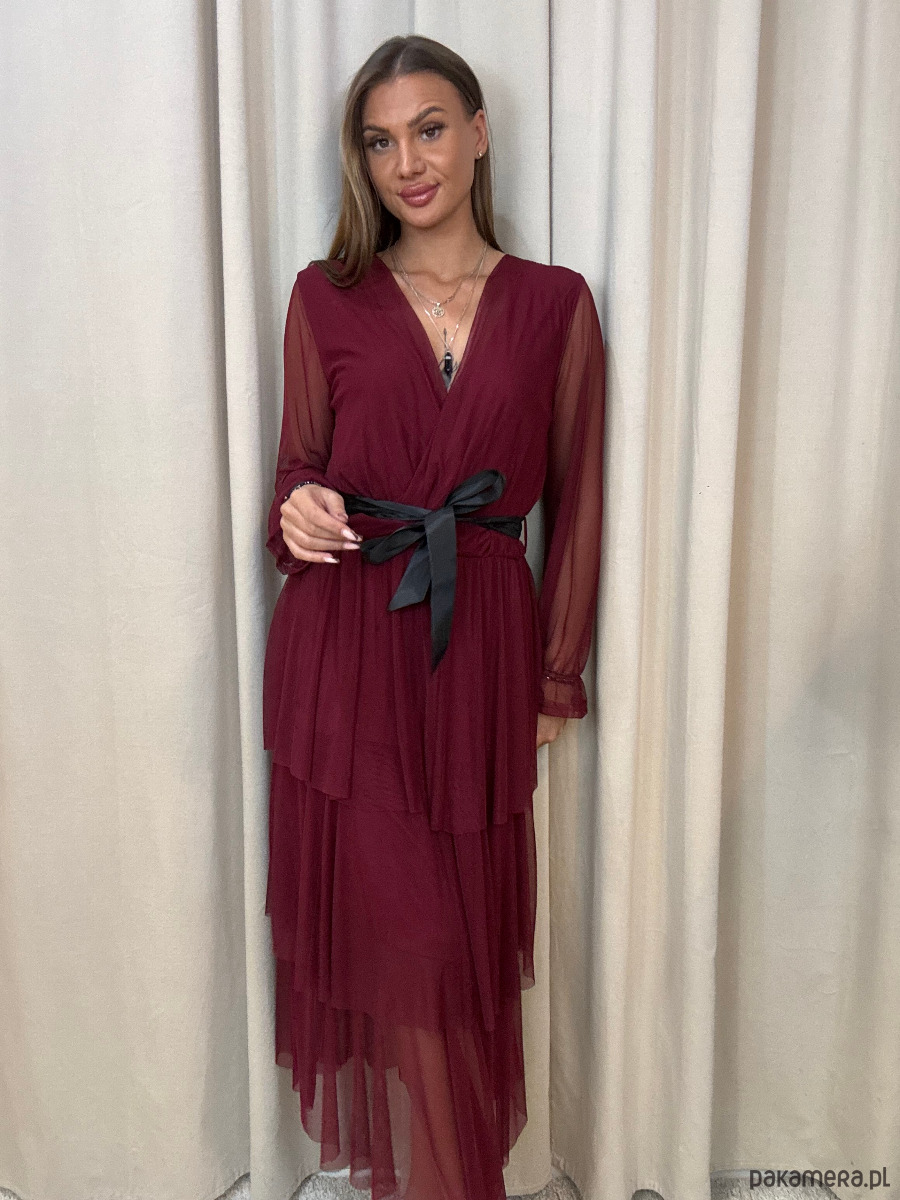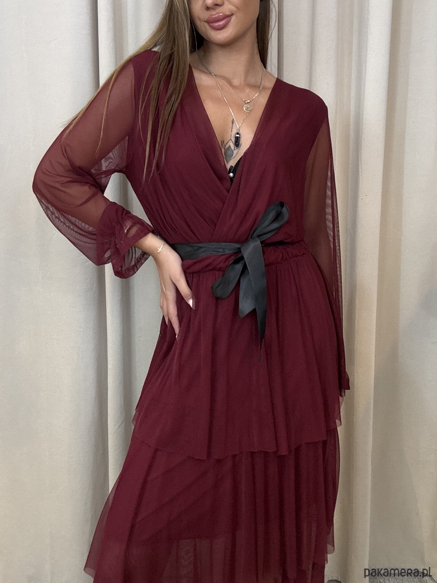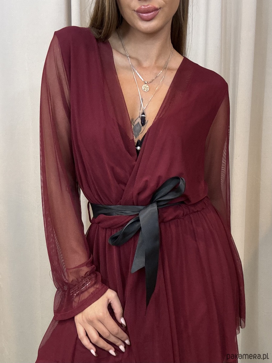 Sukienka damska z halką. Posiada pasek kokardkę.