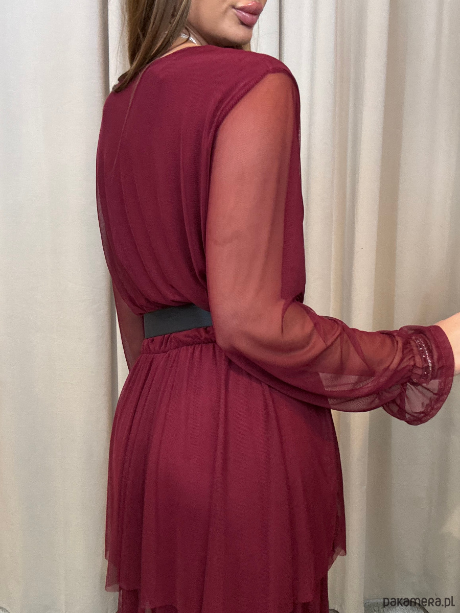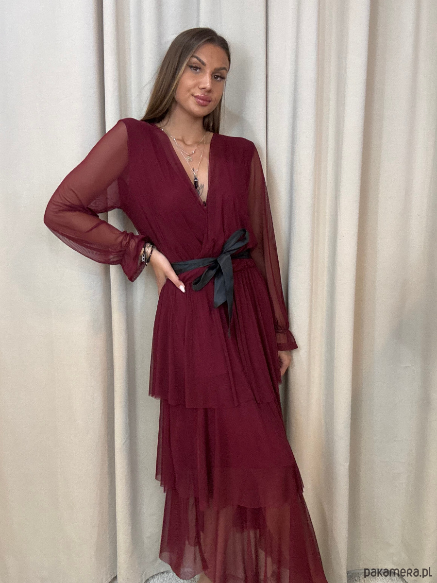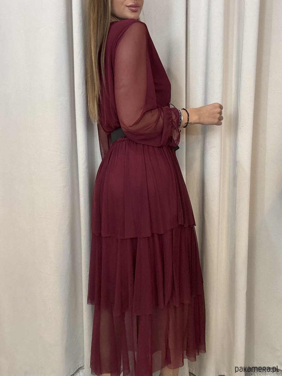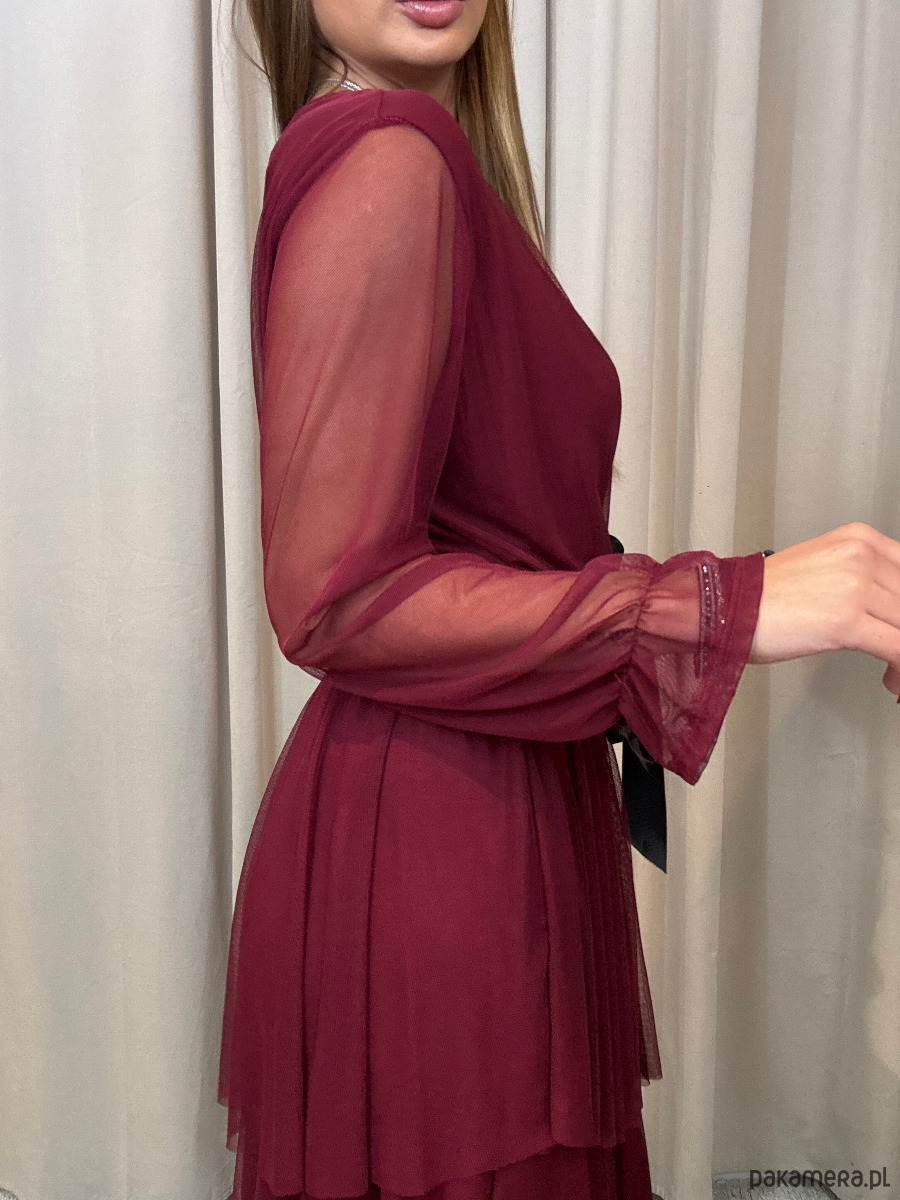 Sukienka damska z halką. Posiada pasek kokardkę.