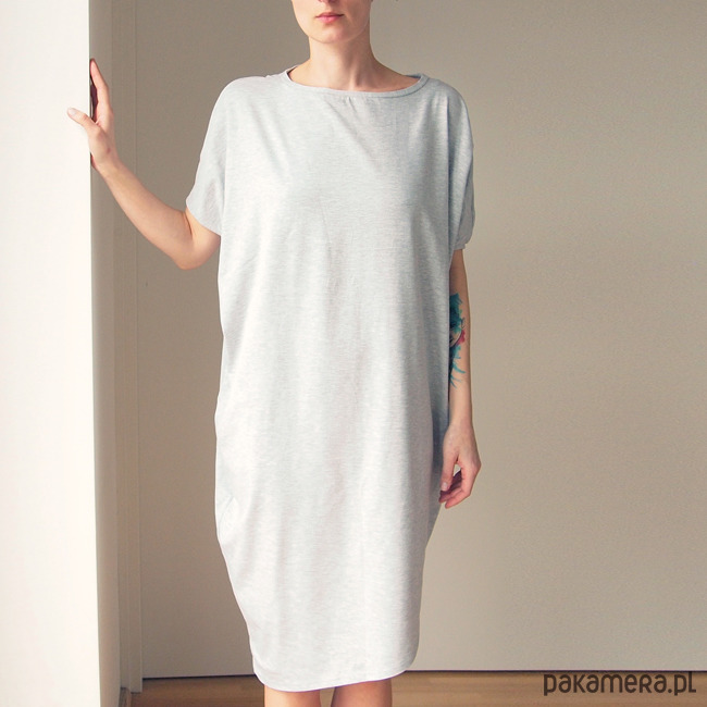 Sukienka z grubszej dzianiny koszulkowej.