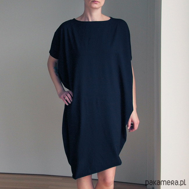 Sukienka krótki rękaw asymetria Czarna