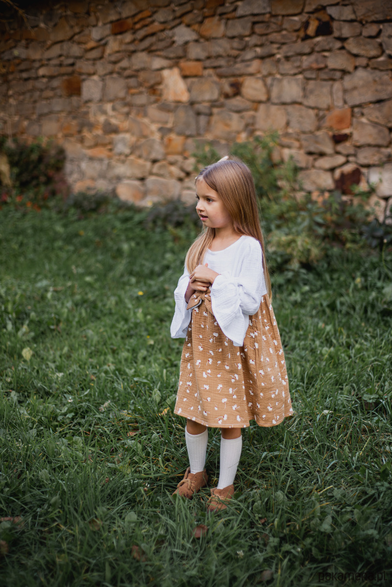 Materiał z którego uszyliśmy sukienkę: wysokiej jakości 100% bawełna organiczna - starannie dobrany materiał, który jest delikatny i przyjemny dla skóry dziecka