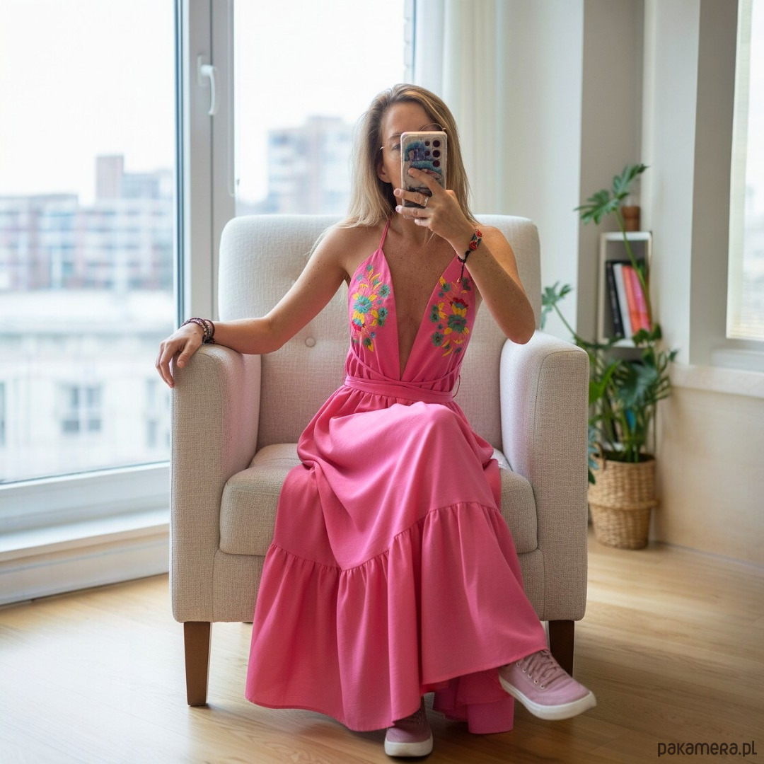 Sukienka Linda to idealny wybór na wiosenne i letnie dni! Długa, uszyta z wiskozy z lnem, łączy w sobie lekkość i elegancję. Słodki, różowy kolor dodaje uroku i świeżości, a odkryte plecy nadają subtelnej zmysłowości.