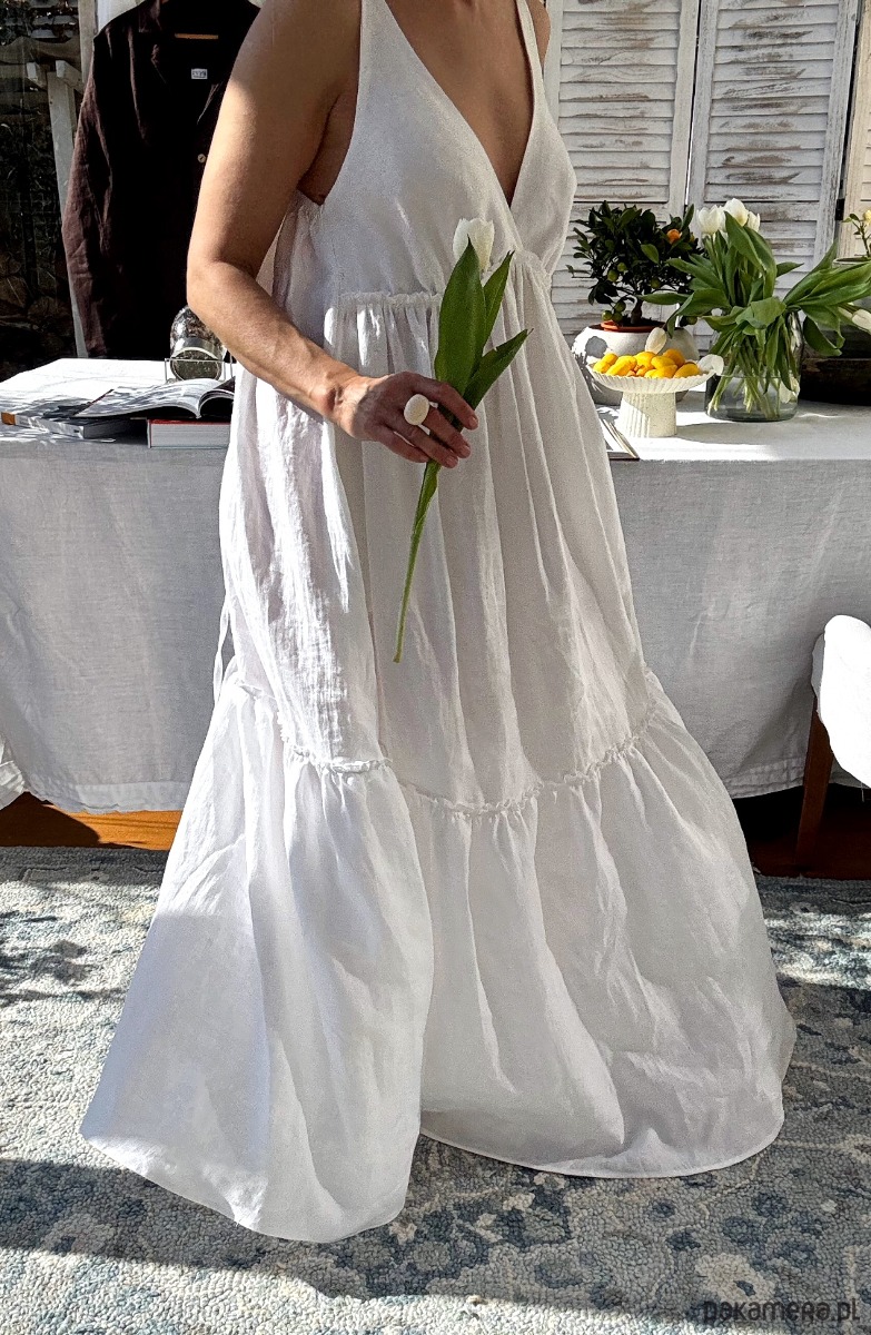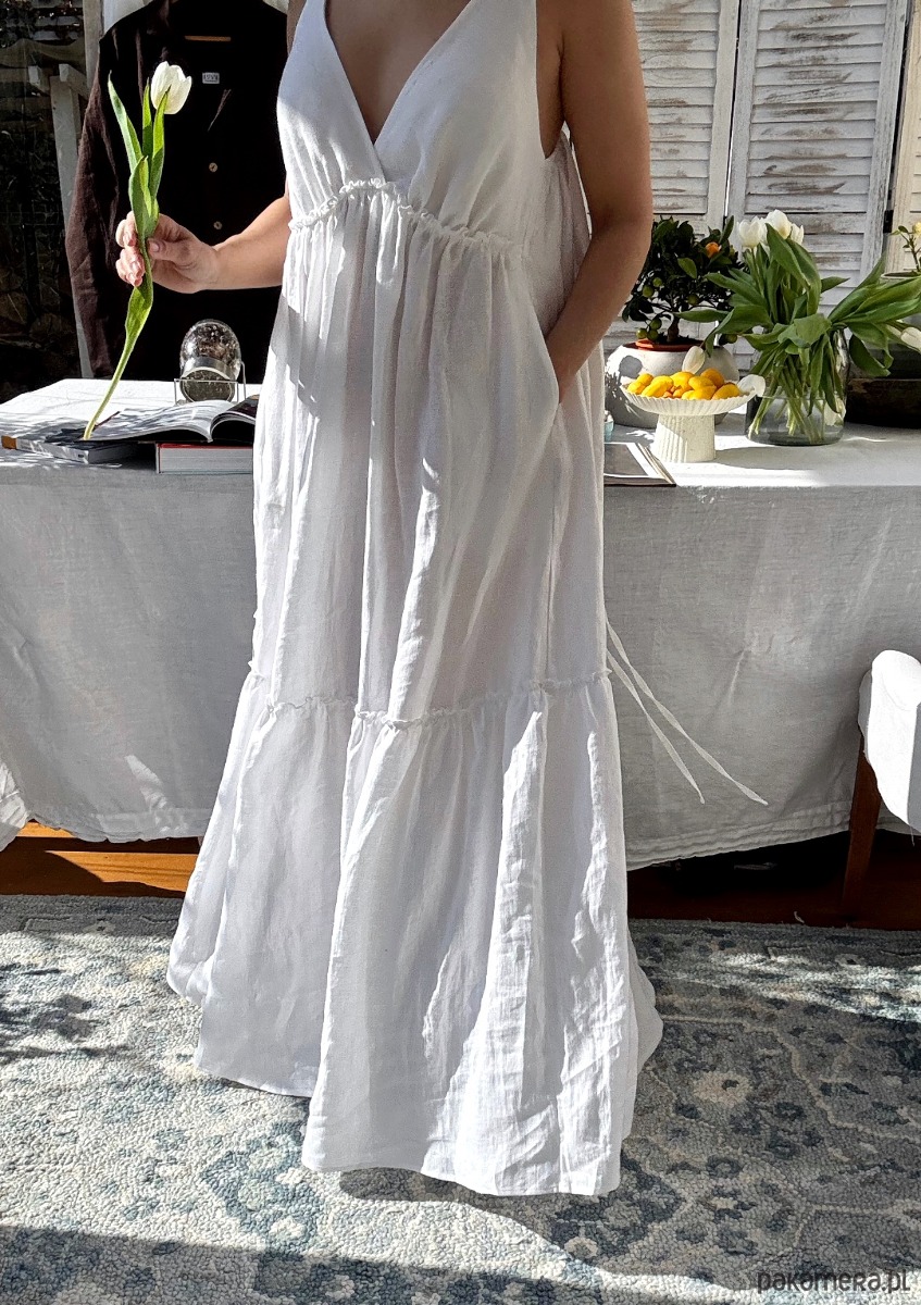 Długa sukienka wykonana z naturalnej tkaniny lnianej to propozycja na ciepłe dni, kiedy liczy się komfort, przewiewność i lekkość ubrań.