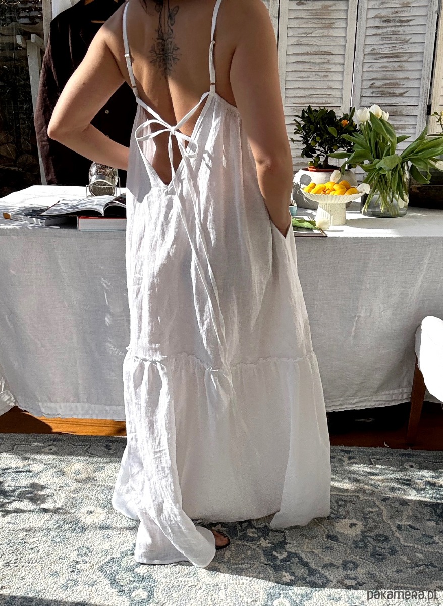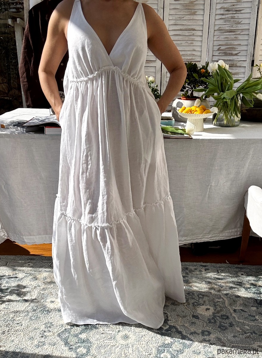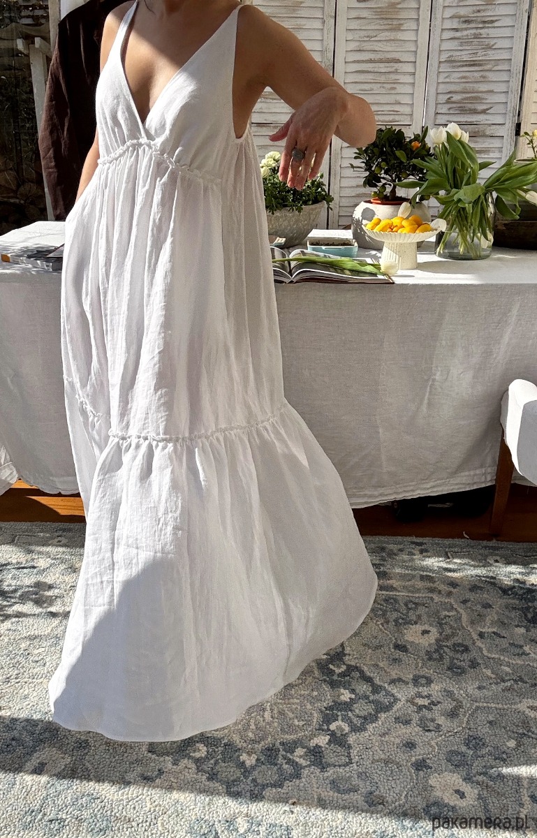 Letnia sukienka z naturalnego lnu w kolorze białym