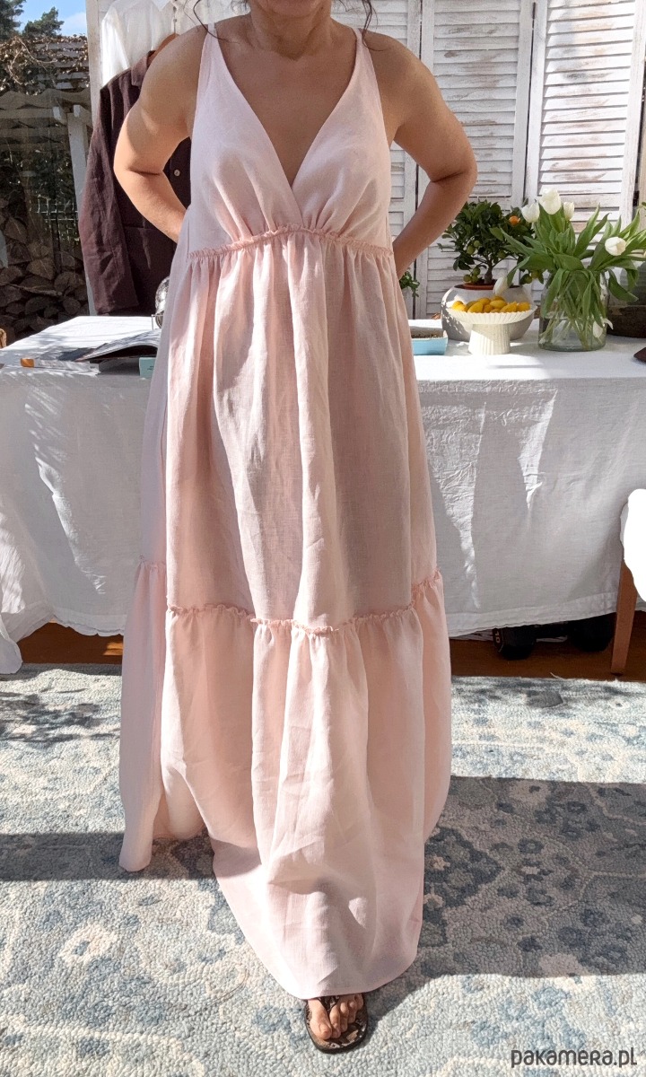 Długa sukienka wykonana z naturalnej tkaniny lnianej to propozycja na ciepłe dni, kiedy liczy się komfort, przewiewność i lekkość ubrań.