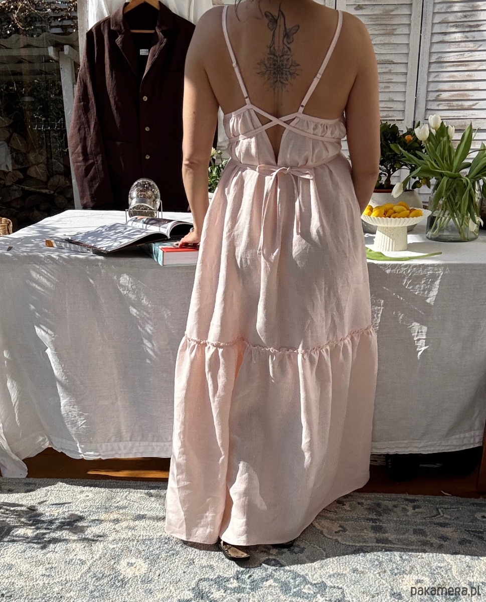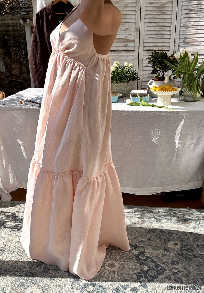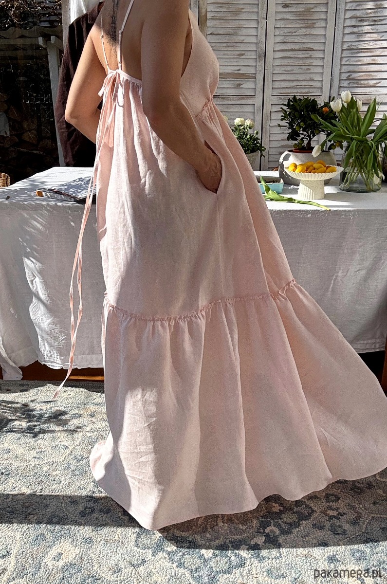 Letnia sukienka z naturalnego lnu w kolorze blush pink