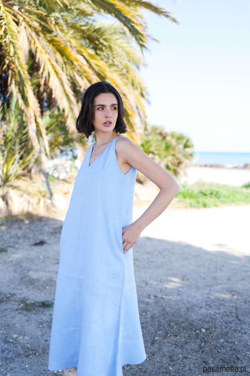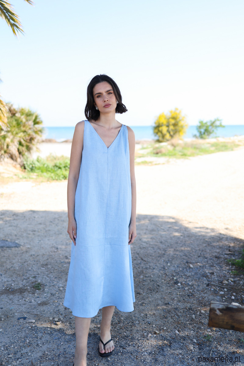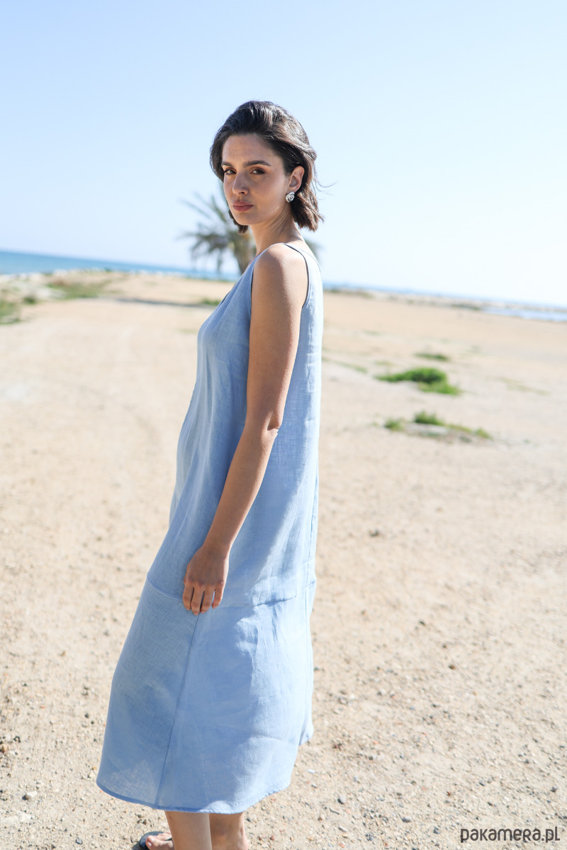 Sukienka lniana Simple lazurowy błękit