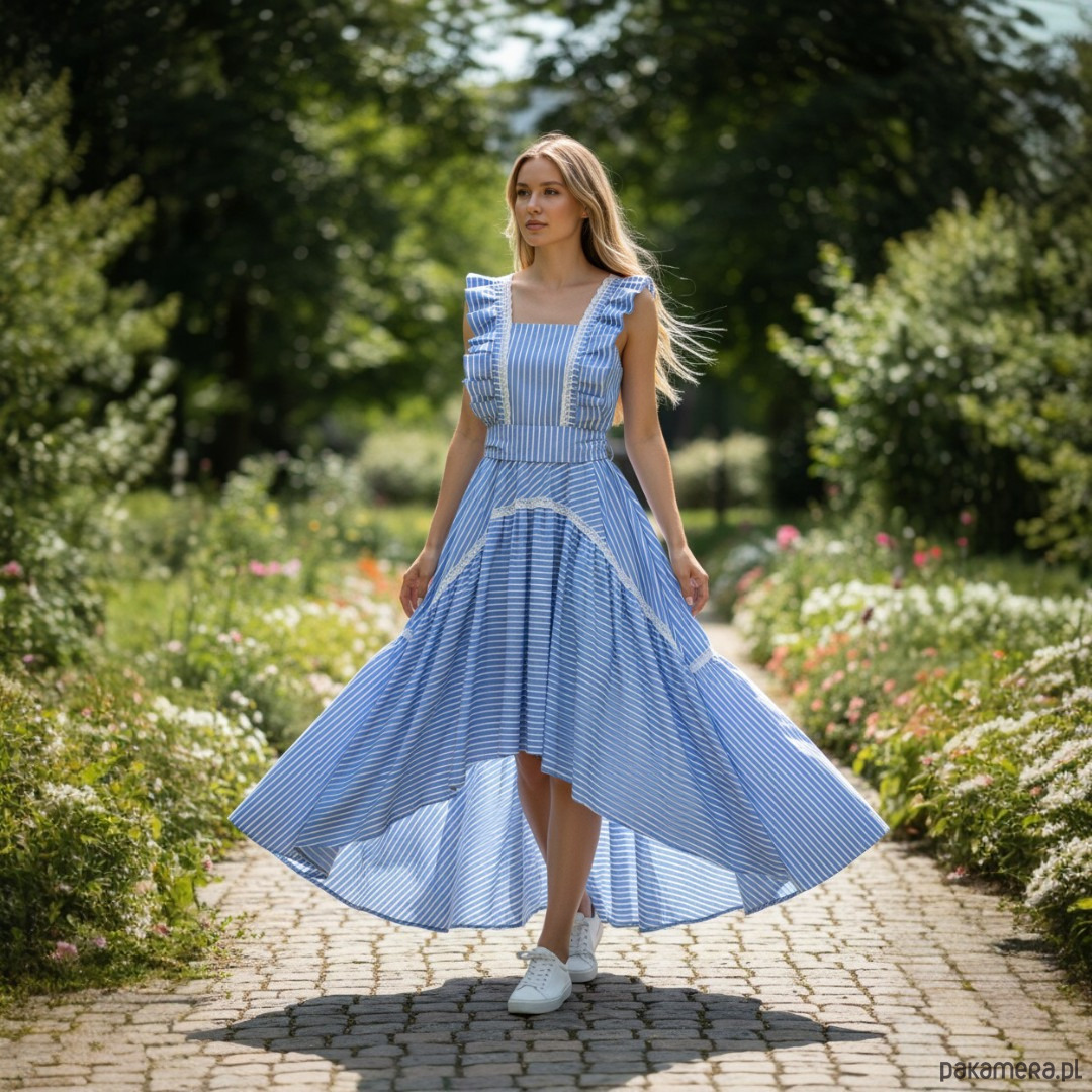 Niebieska, asymetryczna sukienka uszyta z bawełny w niebiesko-białe paski to must-have tego sezonu! 👗❤️