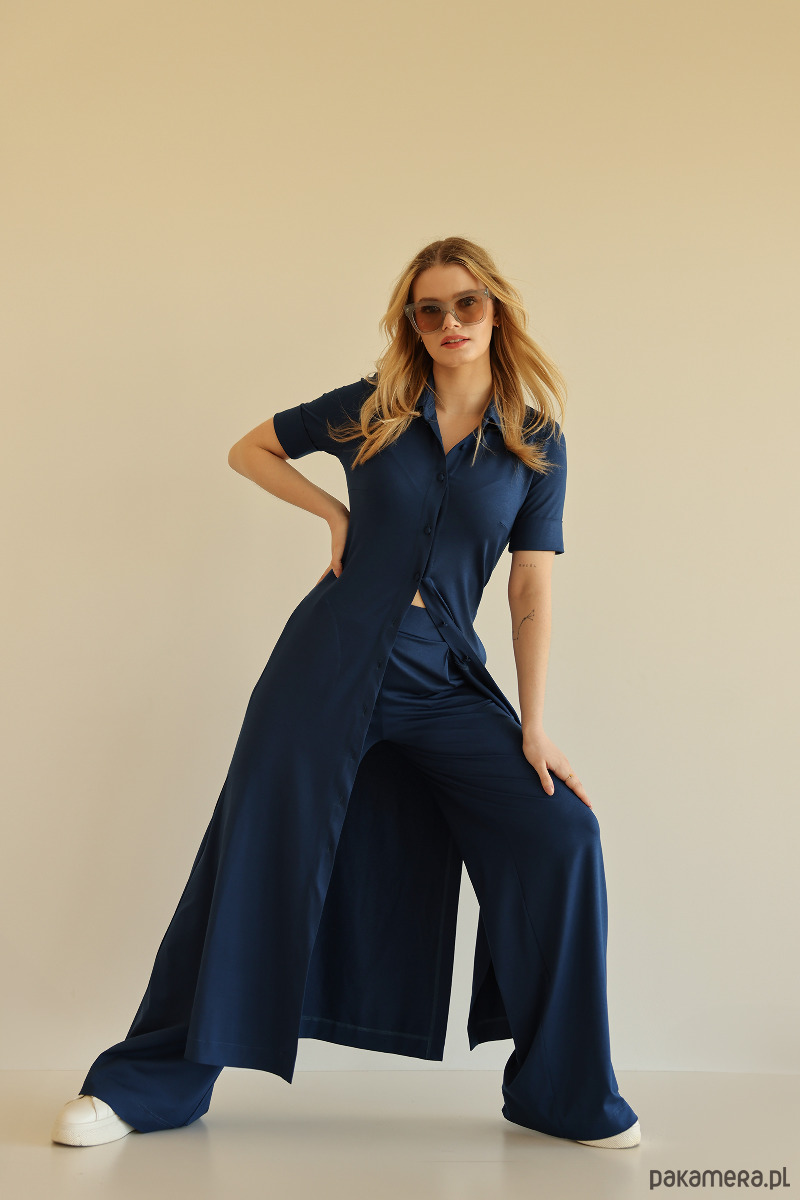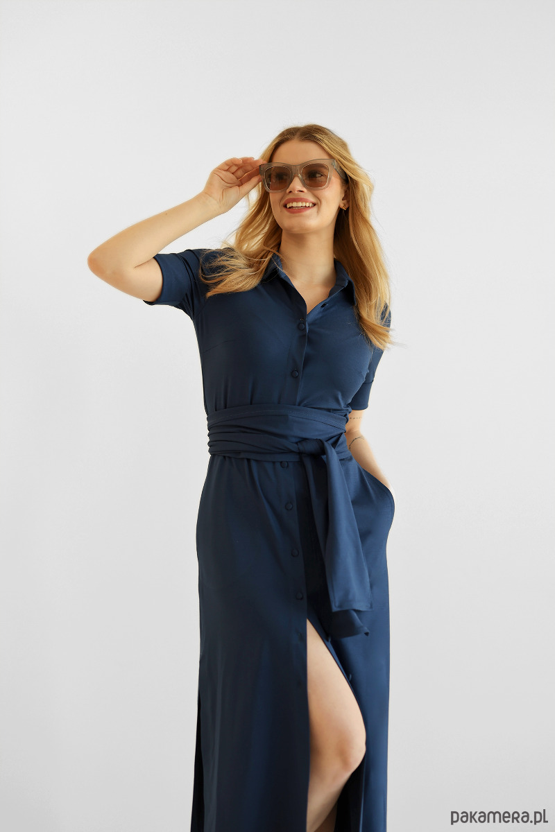 Maria to sukienka z lekko dopasowaną, rozkloszowana w literę A, na guziki zrozporkami po bokach i małym kołnierzykiem.