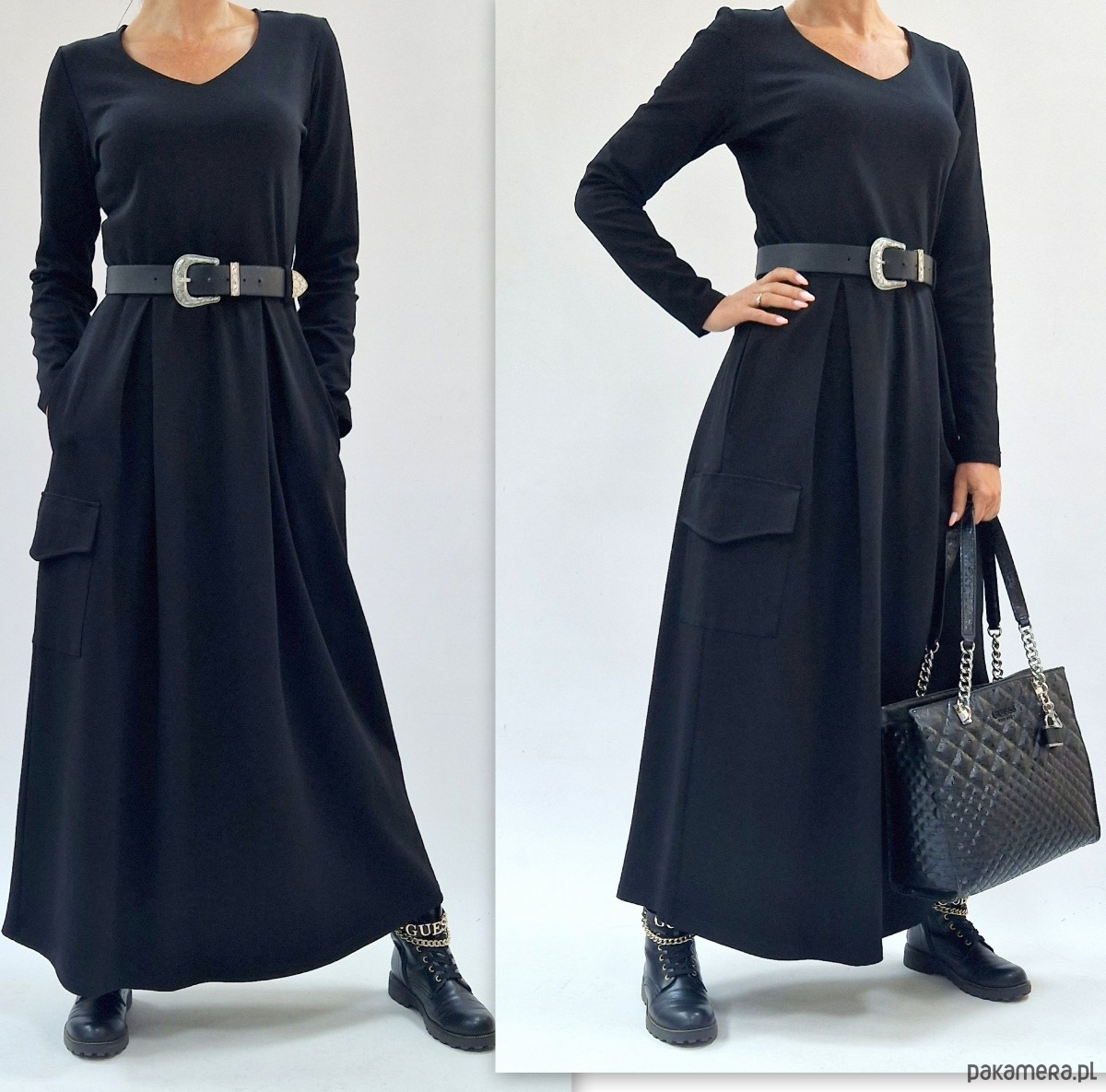 Sukienka maxi cargo z kieszeniami 36-56