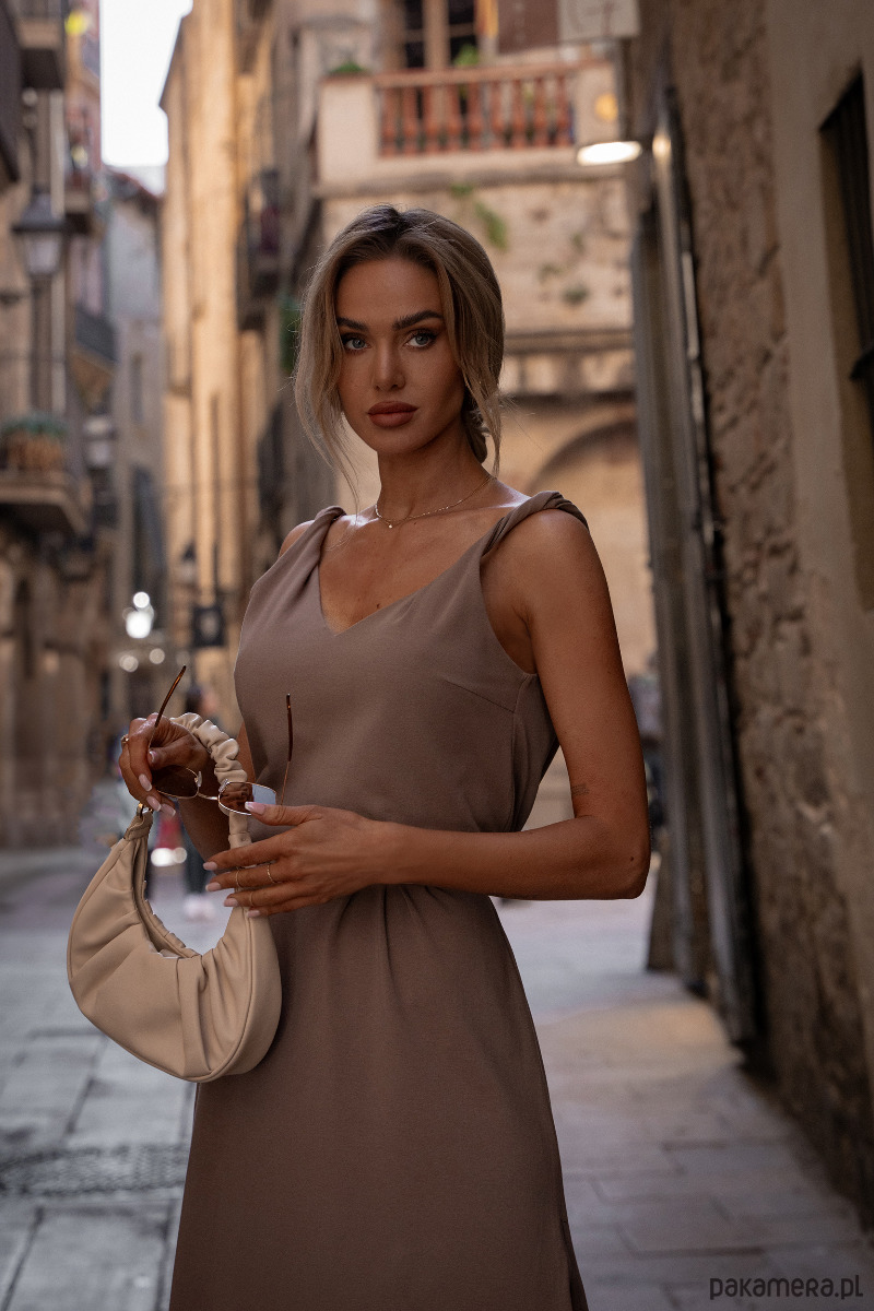 dekolt w kształcie litery V z przodu i głęboki dekolt ozdobiony dekoracyjną blaszką z tyłu