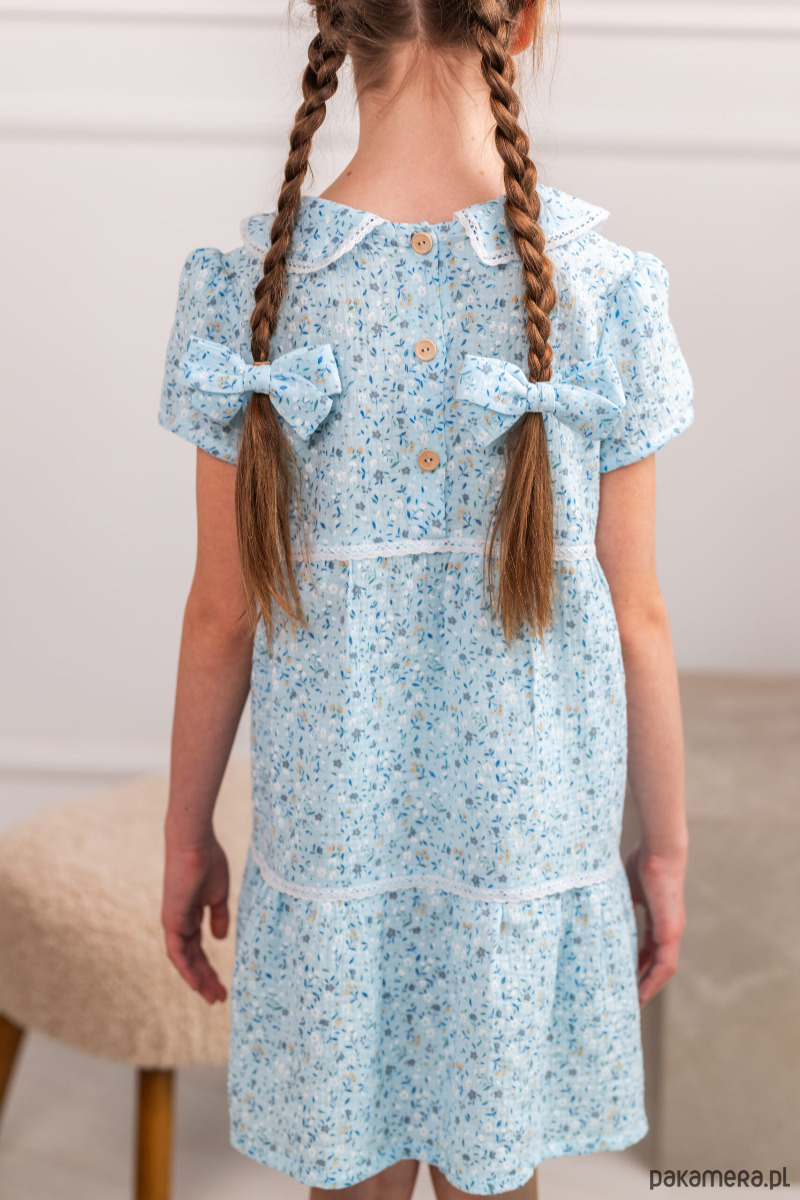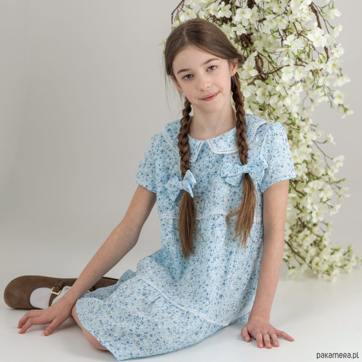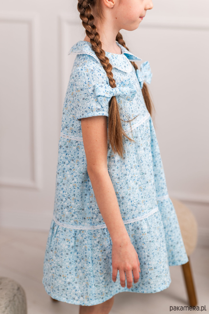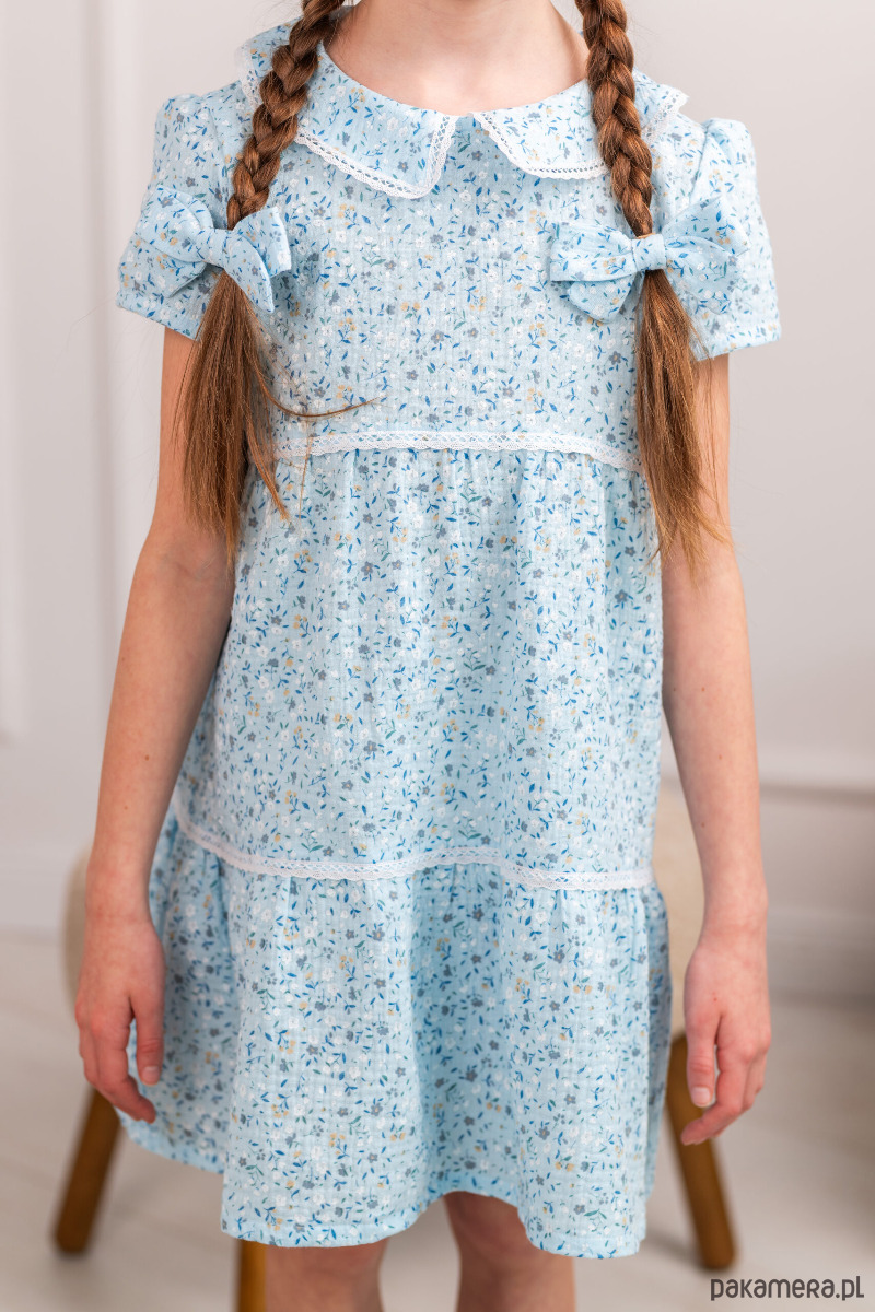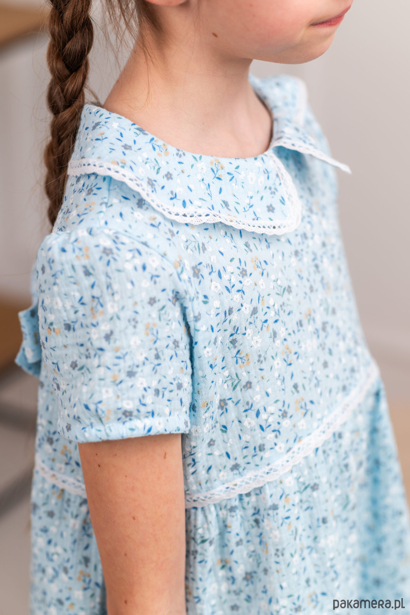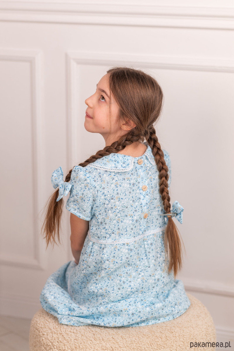 Materiał z którego uszyliśmy sukienkę: wysokiej jakości 100% bawełna muślin – starannie dobrany materiał, który jest delikatny i przyjemny dla skóry dziecka.