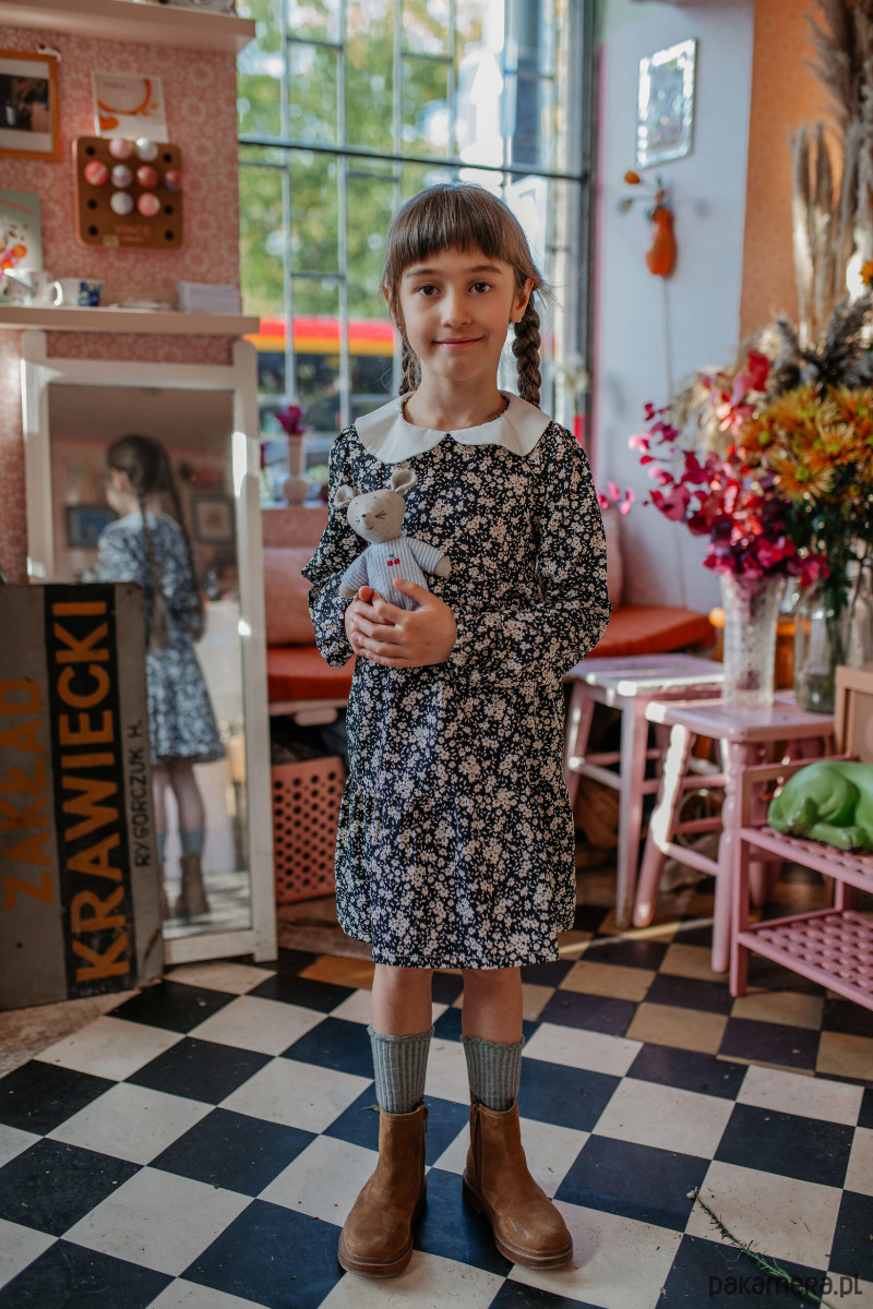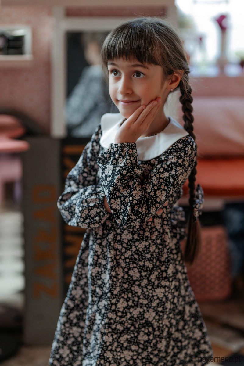 Materiał z którego uszyliśmy sukienkę: wysokiej jakości 100% bawełna organiczna, starannie dobrany materiał, który jest delikatny i przyjemny dla skóry dziecka.