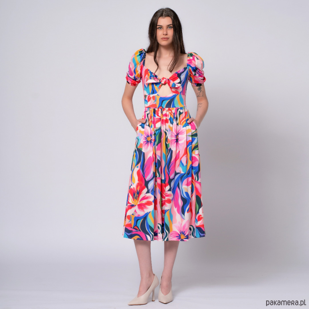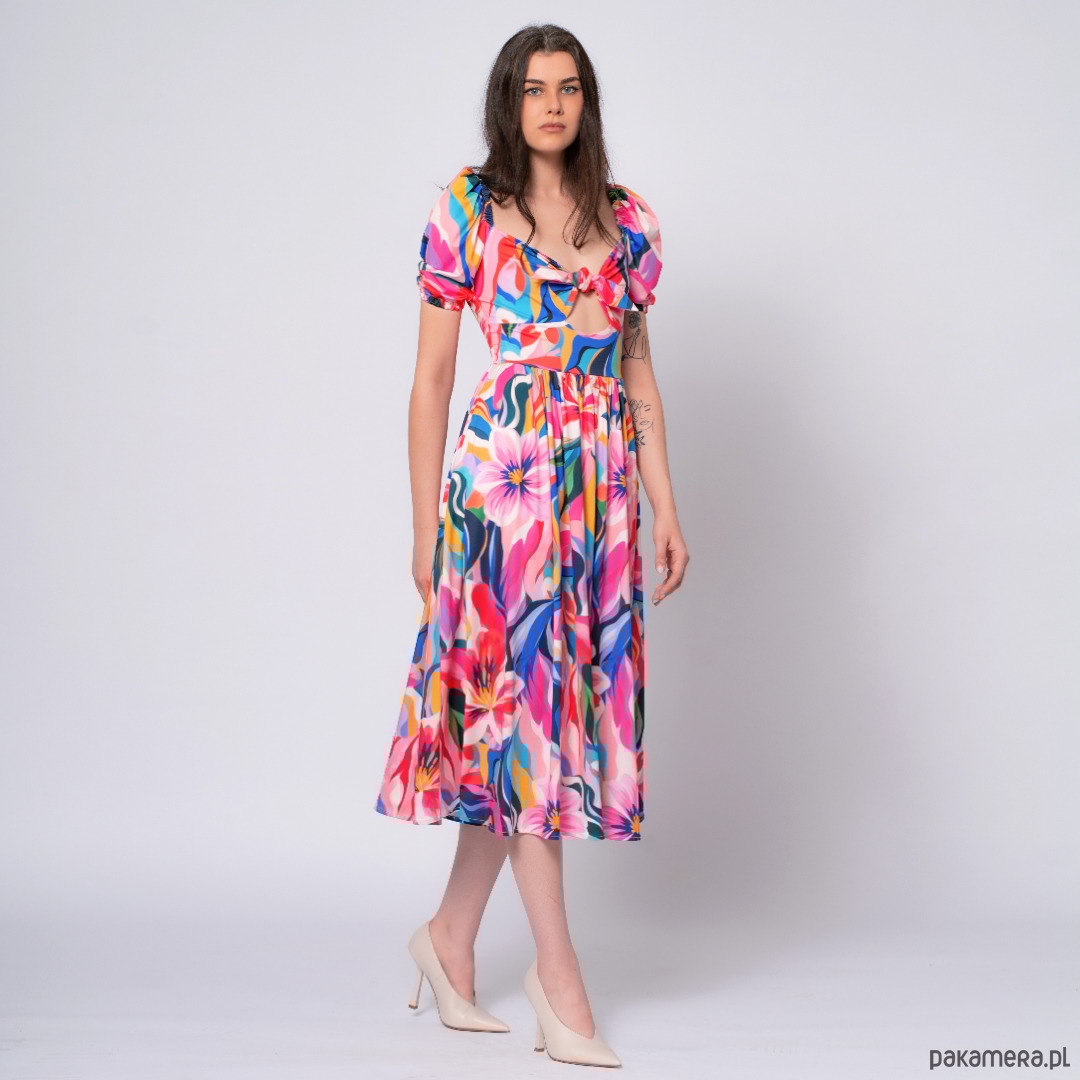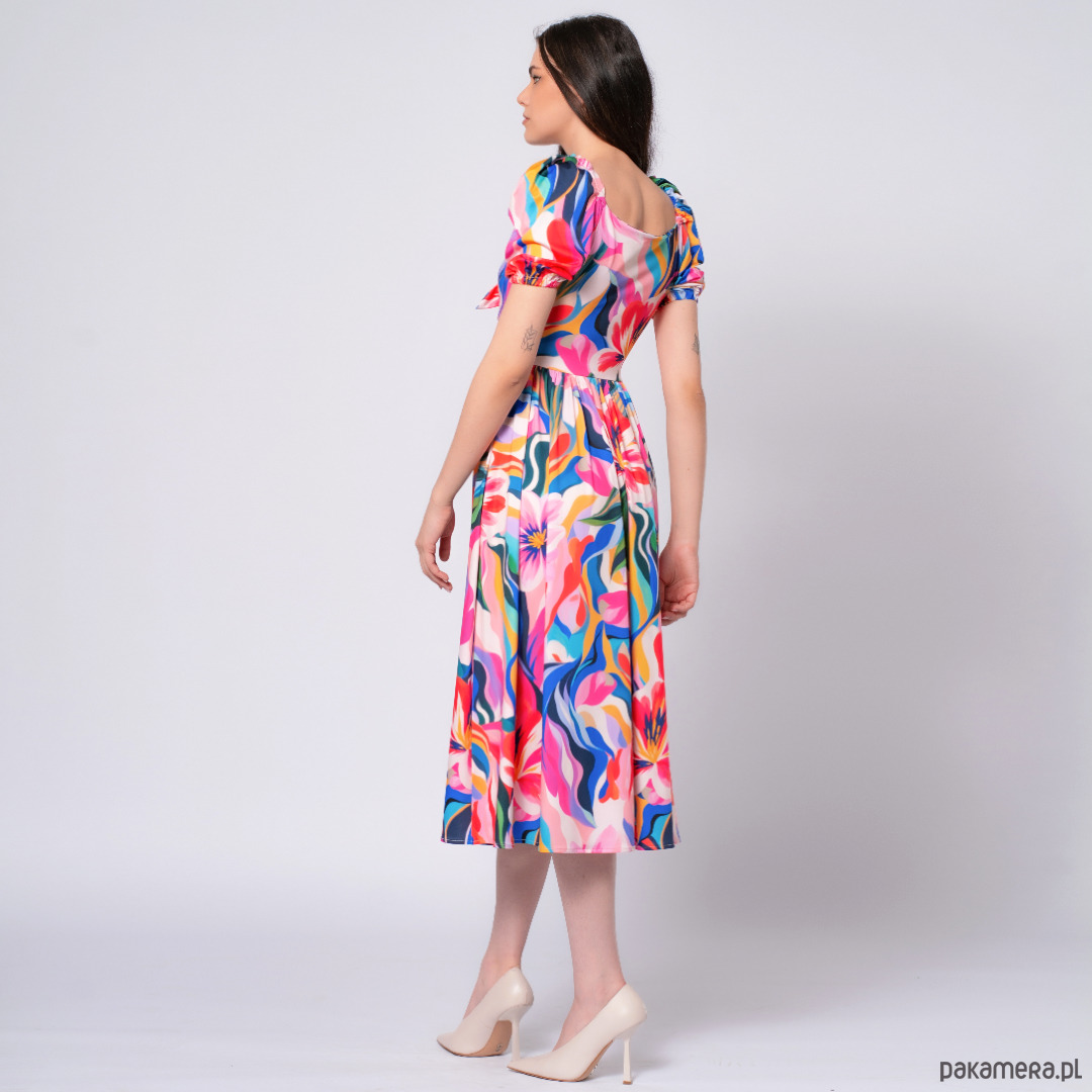 Sukienka „Ola” wykonana z autorskiego jersey'u w ręcznie malowany wzór "Bloom"