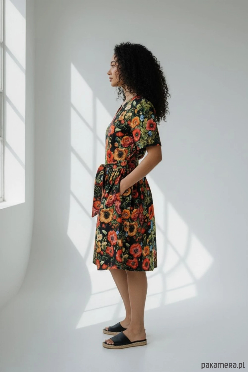 Sukienka Pranajama Summer to idealna propozycja dla osób, które szukają wygodnej i kobiecej sukienki z charakterem, łączącej lekkość materiału z efektownym kwiatowym wzorem.
