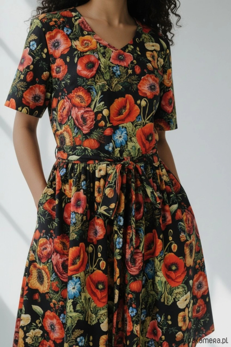 Dodatkowym atutem są praktyczne kieszenie, które zwiększają funkcjonalność sukienki i wygodę noszenia.