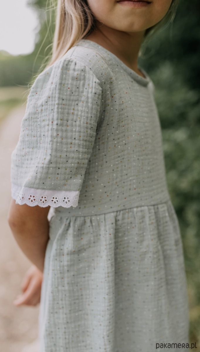 Materiał z którego uszyliśmy sukienkę: 100% wysokiej jakości muślin.