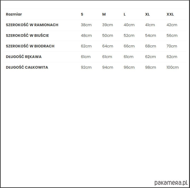 fason niedopasowany z możliwością przewiązania za pomocą dołączonego paska