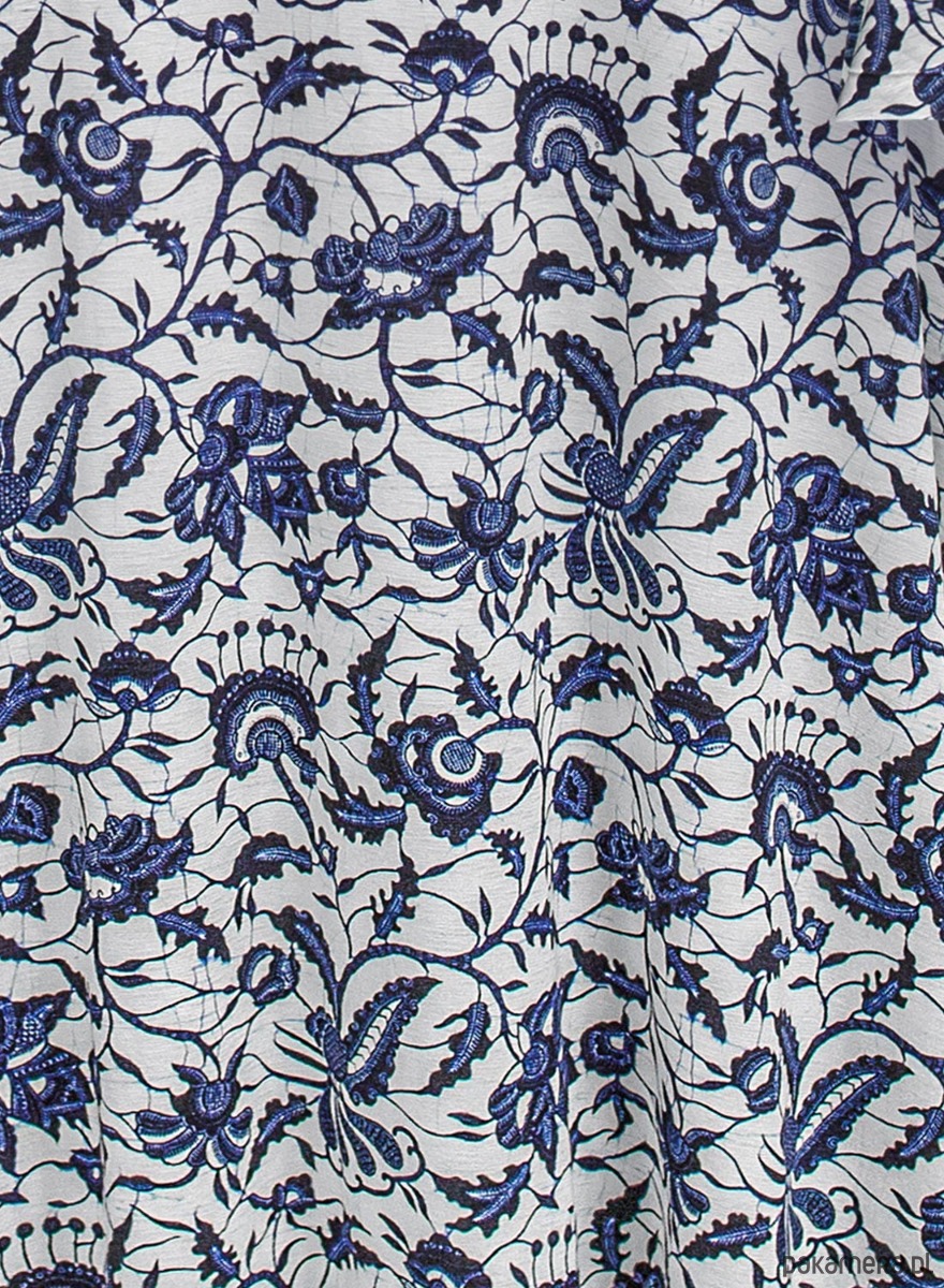 Sukienka maxi z mankietami w kształcie dzwonka i golfem. Uszyta z bardzo przyjemnej w dotyku, wysokogatunkowej dzianiny wiskozowej z printem roślinnym w niebieskie kwiaty. Dzięki elastycznej dzianinie sukienka dopasowuje się do Twojej sylwetki, podkreślając figurę, a jednocześnie zapewnia pełną swobodę ruchów, a dzięki wzorzystemu printowi jest w stanie ukryć co nieco ;) Zjawiskowa a jednocześnie bardzo praktyczna i wygodna