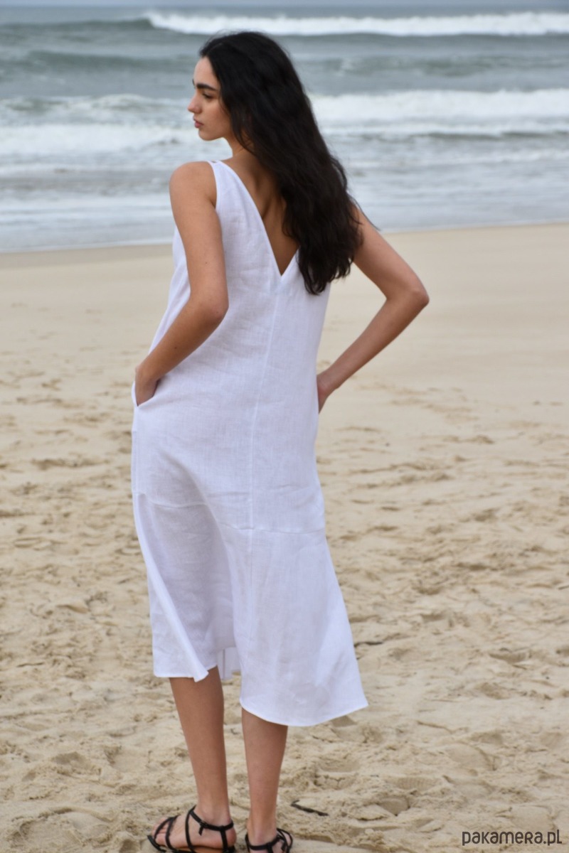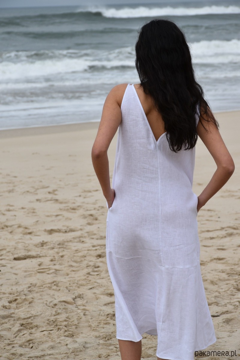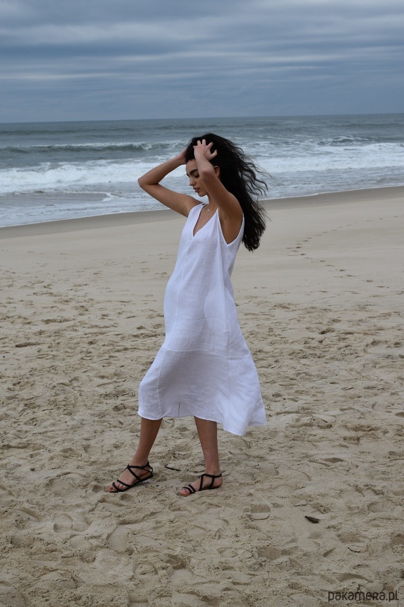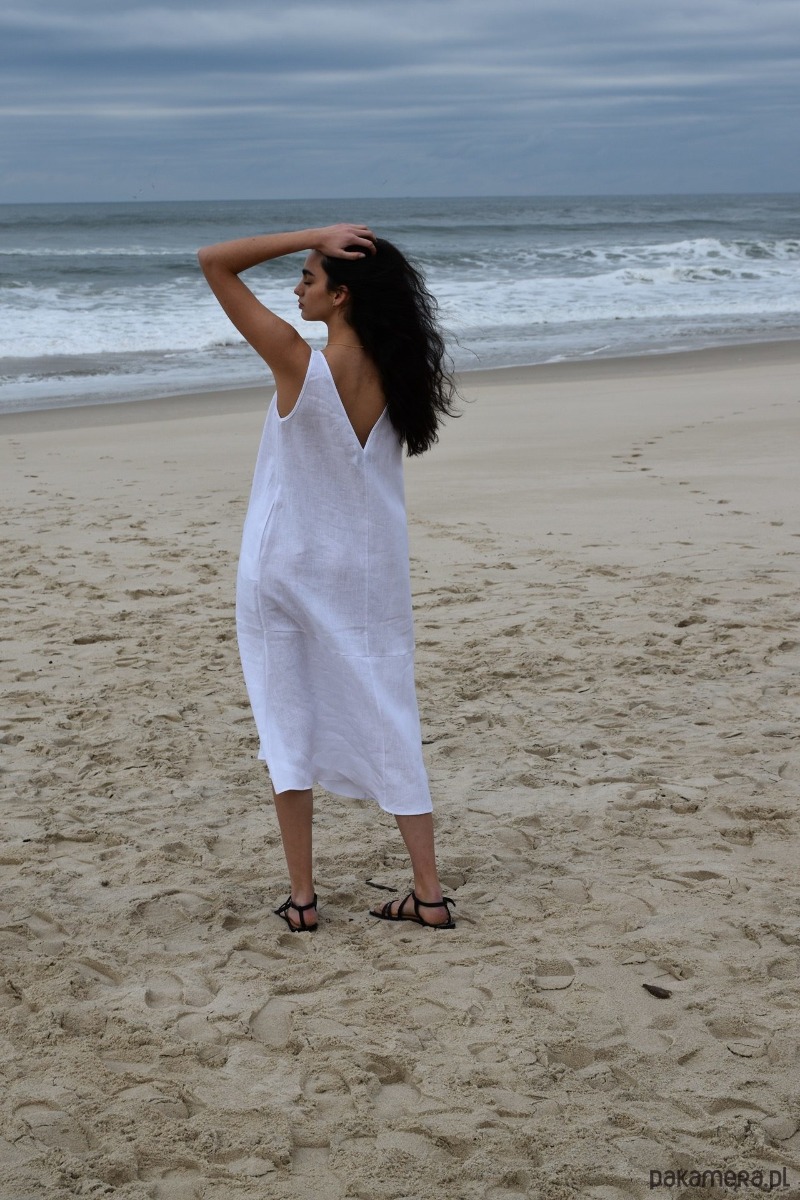 Poznaj naszą długą lnianą sukienkę. Co jest jej siłą? Prostota, swobodny fason, kieszenie i dekolt w kształcie litry v. Skrojona i uszyta w jakości premium w pracowni projektowo – krawieckiej w Łodzi.