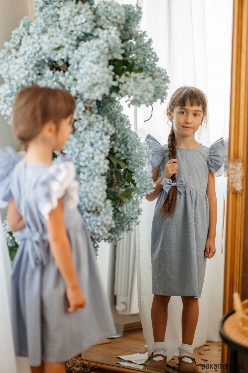 plumeti w pięknym niebieskim kolorze. Z tyłu wiązana na pasek. Idealna na wyjątkowe