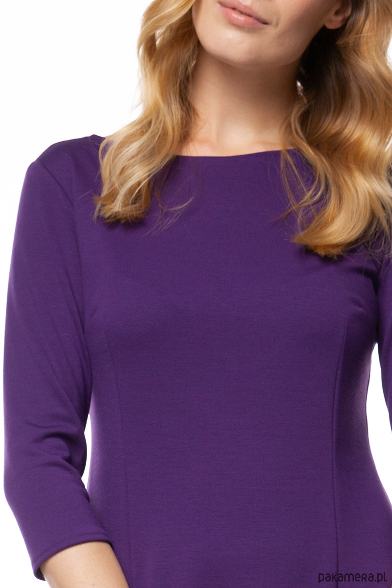 Sukienka uszyta z dzianiny średniej grubości w kolorze fioletowym. Materiał jest miły w dotyku i lekko elastyczny.