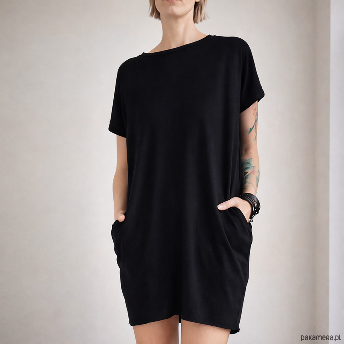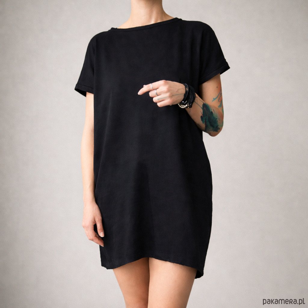 Sukienka tshirt oversize Czarna Kieszenie